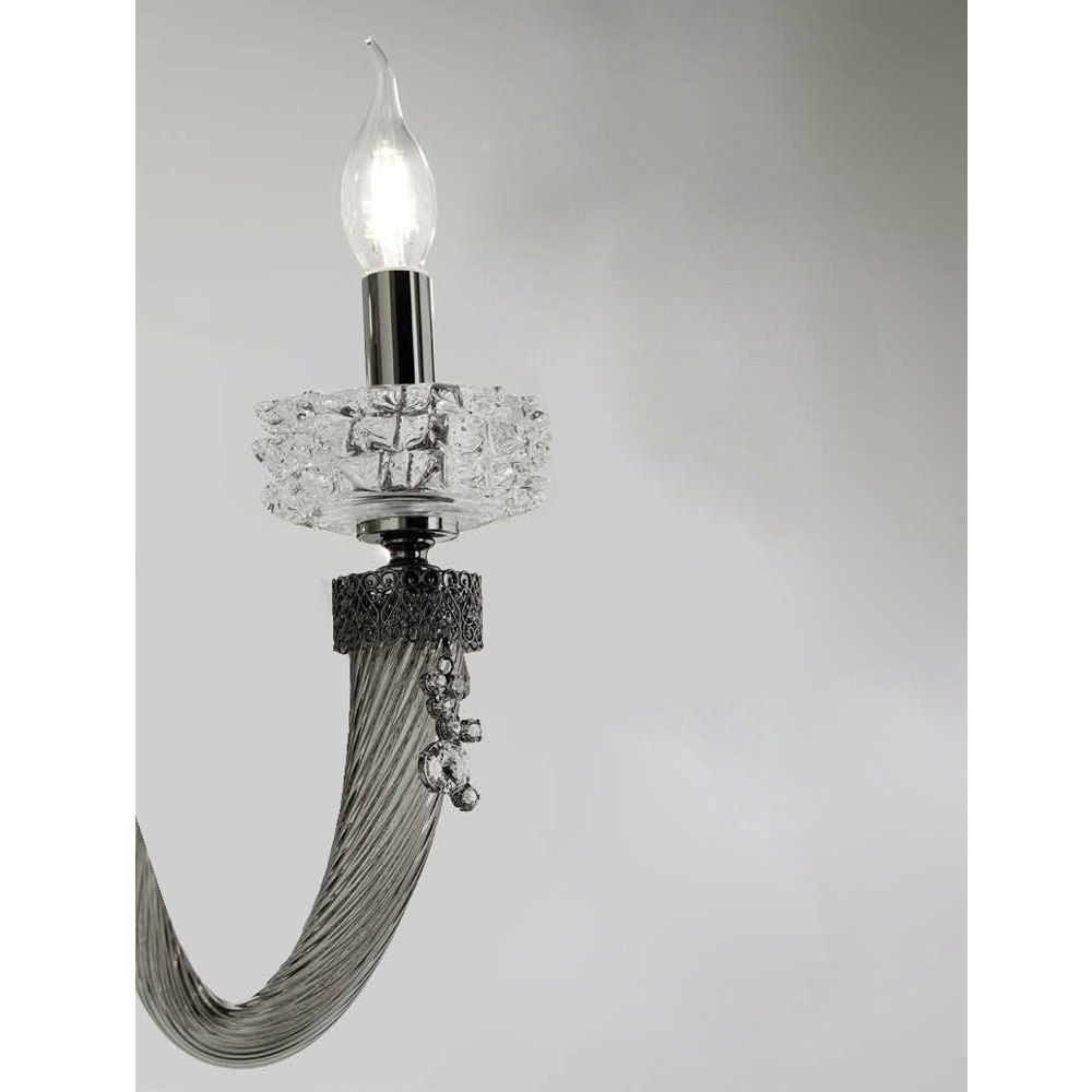 2-lichts wandlamp in handgemaakt glas en metaal, Italiaans luxe design.
