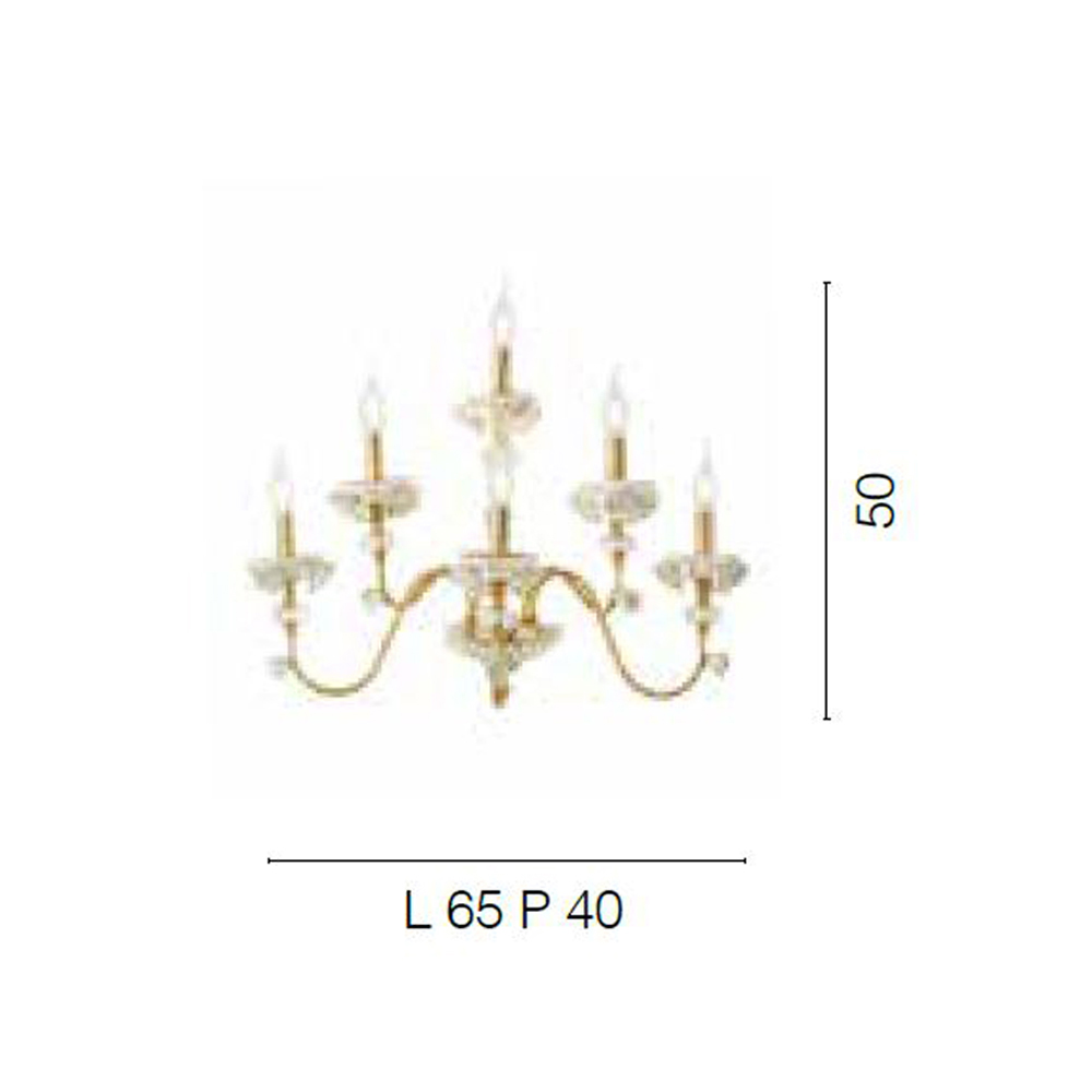 6 lichts wandlamp in porselein en geblazen glas, luxe made in Italy.