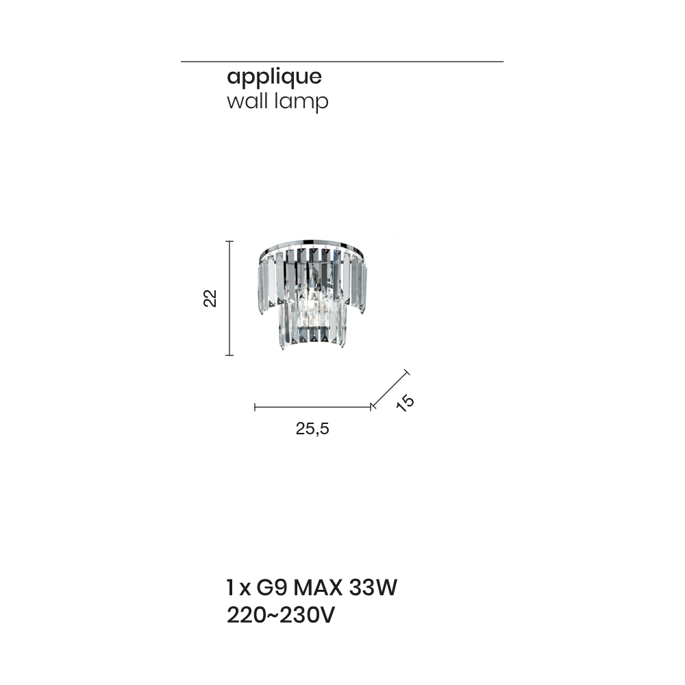 Het bestaat uit een zilveren metalen structuur en zijn sterke punt wordt gegeven door de kristallen hangers die decoreren en elke omgeving verlichten met smaak en karakter, in een mix van stijl, klasse en innovatie.