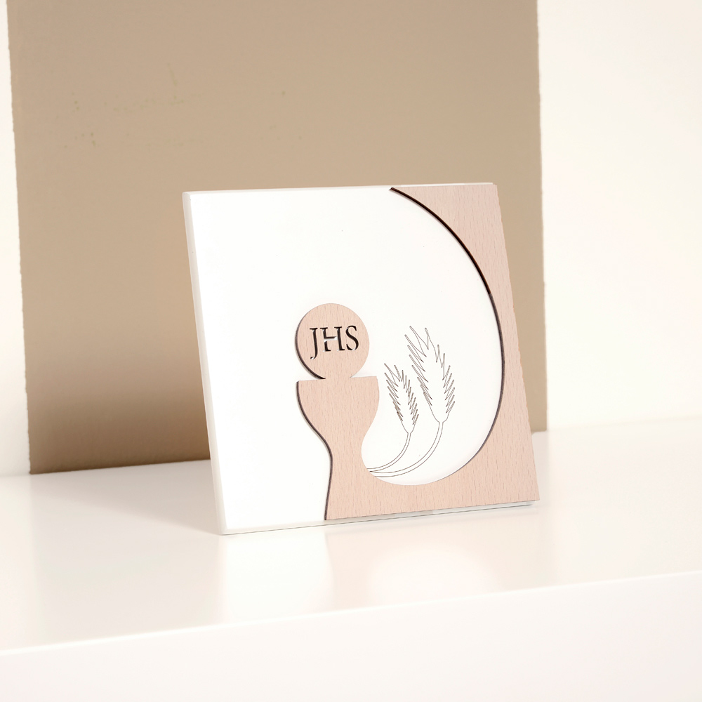 De Italiaanse meester-ambachtslieden hebben hard gewerkt om eenvoudige en lineaire afwerkingen te creëren die de symbolen van de eucharistie, de kelk en de wafel met korenaren naar voren willen brengen. Zo ontstond een eenvoudig maar visueel opvallend product dat als cadeau kan worden gegeven of een herinnering aan een speciaal moment kan vertegenwoordigen.
