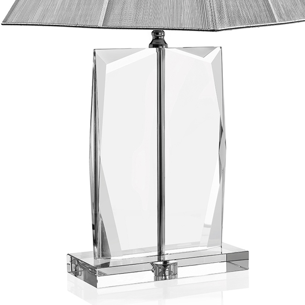 Kristallen tafellamp met vierkante zilveren lampenkap in 2 maten.