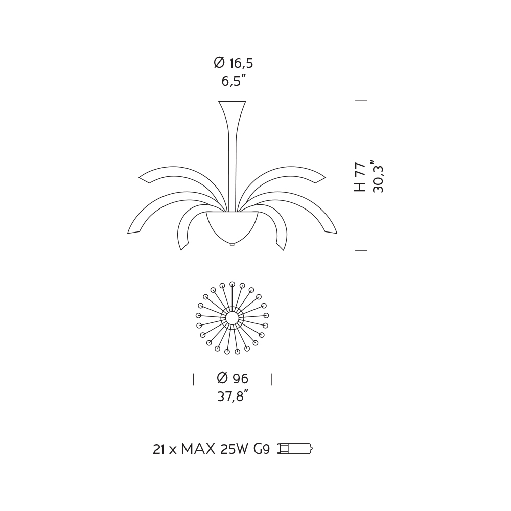 Lampen (niet inbegrepen) : 21 x MAX 25W G9