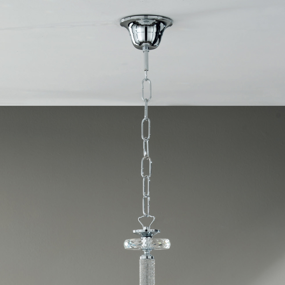 Het ontwerp wordt afgerond door de ringdetails met druppels van optisch kristal en de verchroomde metalen afwerkingen , waardoor het accessoire een luxueuze en belangrijke sfeer kan creëren.