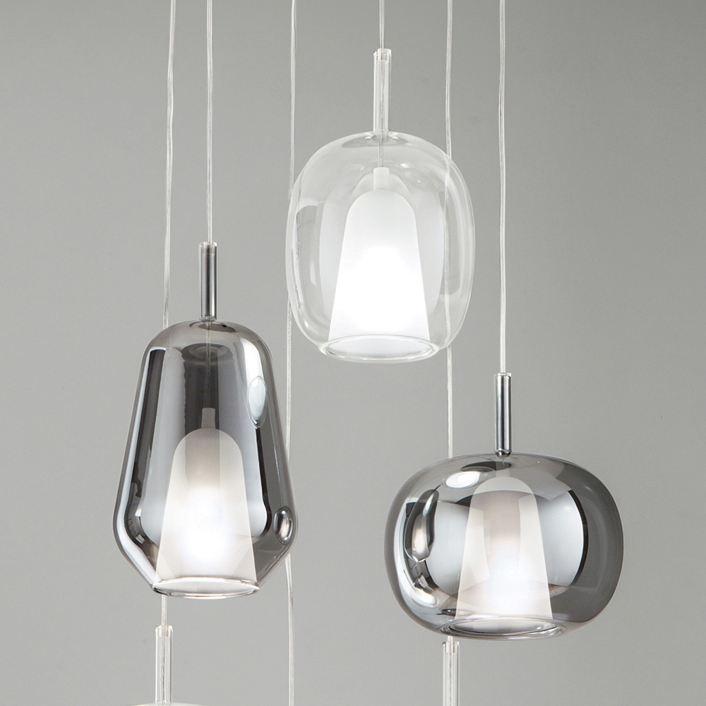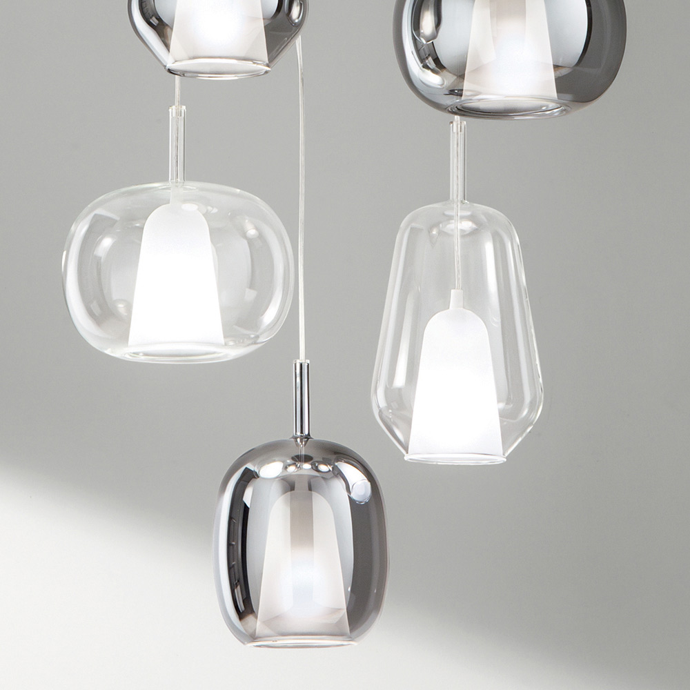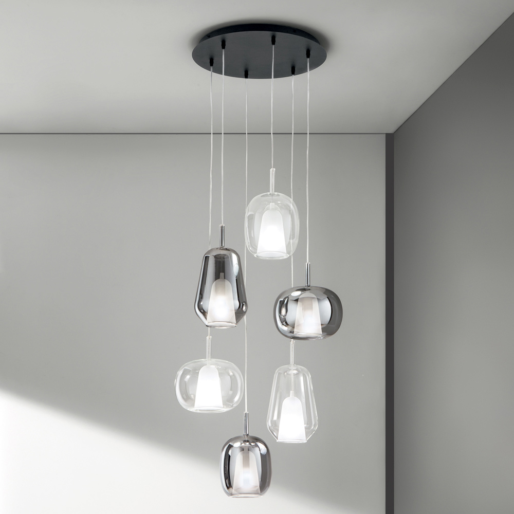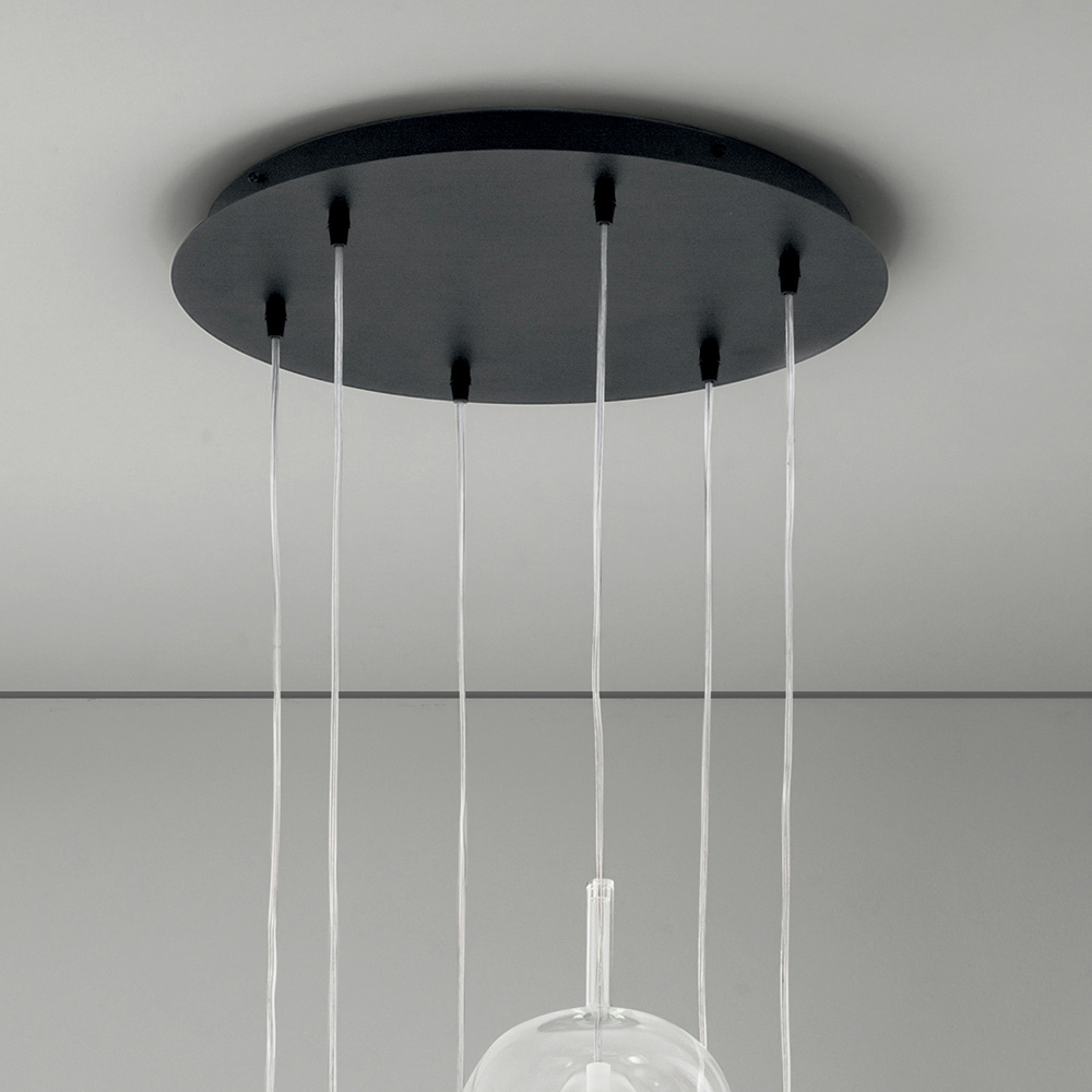 Ontdek de charme van verfijnde verlichting met deze kroonluchter, ontworpen om elegantie en warmte in elke ruimte te brengen . De diffusers, opgehangen aan een dunne draad, zijn in verschillende afwerkingen, en weerspiegelen een gastvrij en uitnodigend licht dat de omgeving verrijkt met een vleugje verfijnde moderniteit .