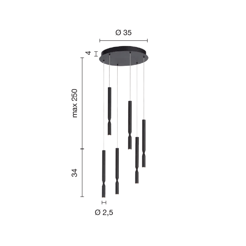 Dimensies:- basis in het plafond: diameter 35cm x hoogte 4cm