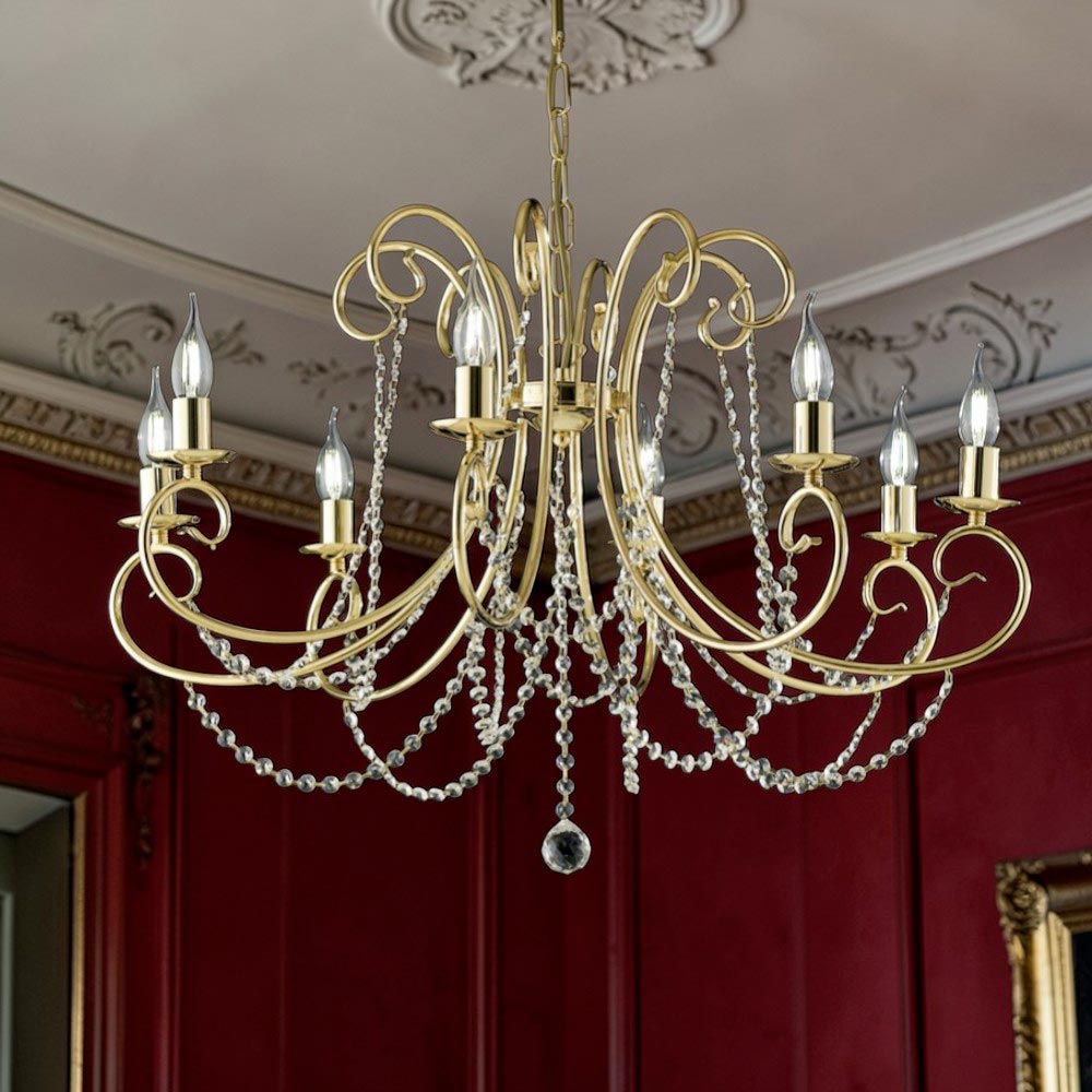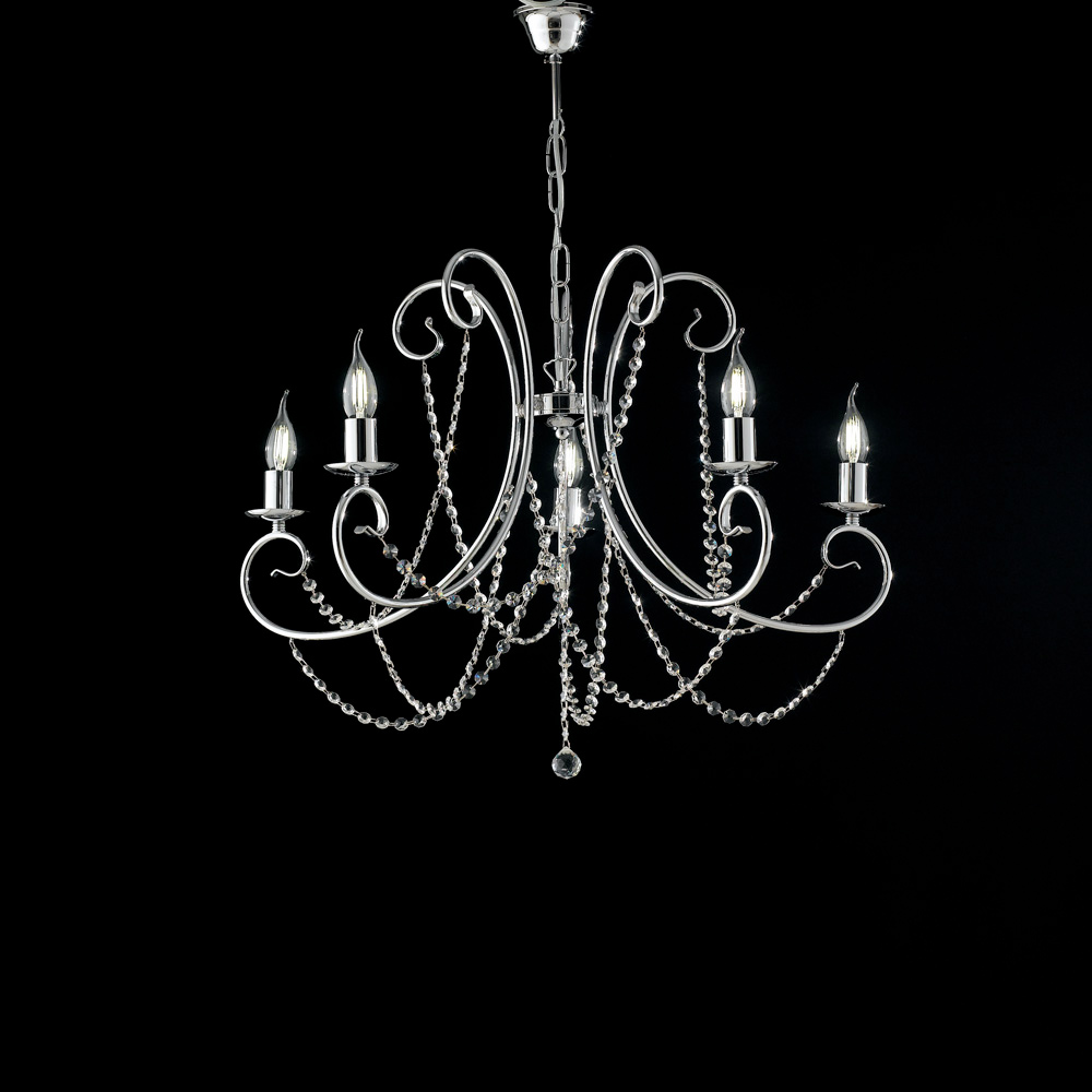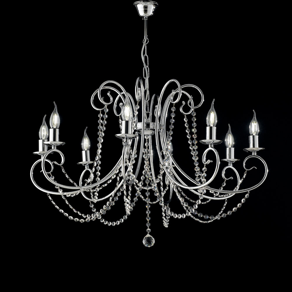 Verkrijgbaar in een verfijnde, gepolijste chroom- of goudkleurige afwerking, past deze lamp perfect in zowel stijlvolle, moderne als meer traditionele interieurs en vormt hij het middelpunt van de ruimte. Het kaarslicht accentueert elk detail en creëert een warme, dramatische en uitnodigende sfeer.