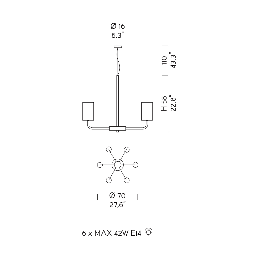Lampen (niet inbegrepen) : 6, 9 of 12 x MAX 42W E14