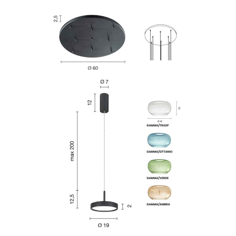 Dimensies:- basis in plafond: diameter 60cm x hoogte 2,5cm