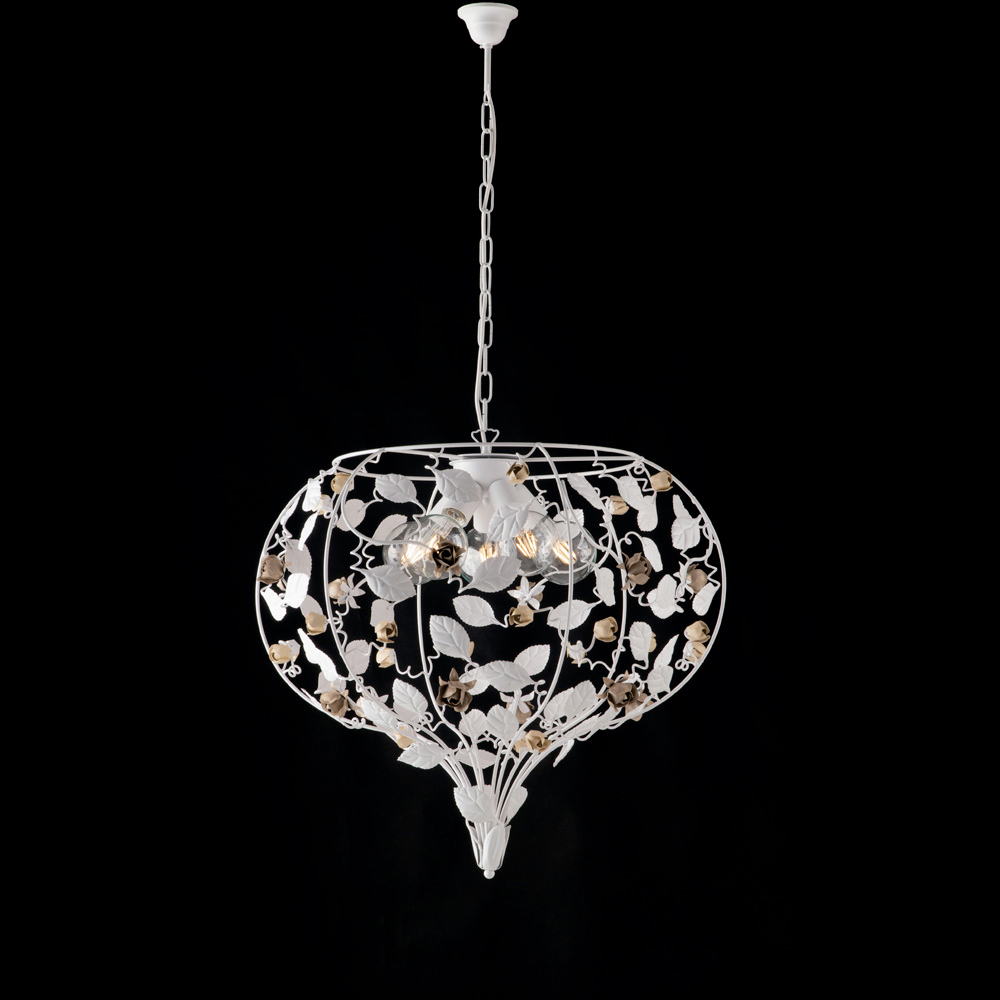 Deze kroonluchter is verkrijgbaar in de verfijnde, lichte en romantische Shabby White -afwerking of in de warme en kostbare Ivory-versie met gouden details . Hij past perfect in elegante woonkamers, eetkamers, sfeervolle entrees en prestigieuze projectinrichtingen .