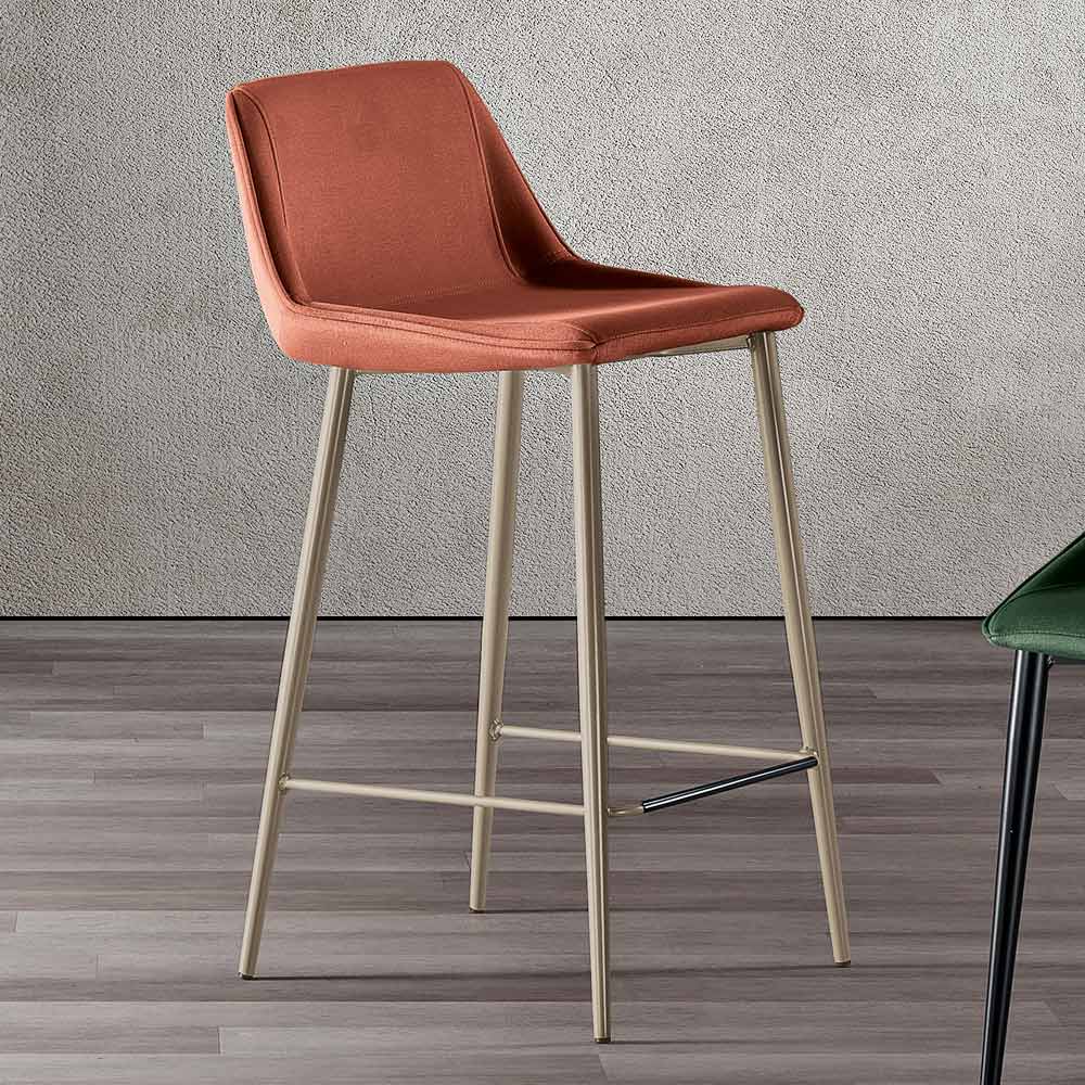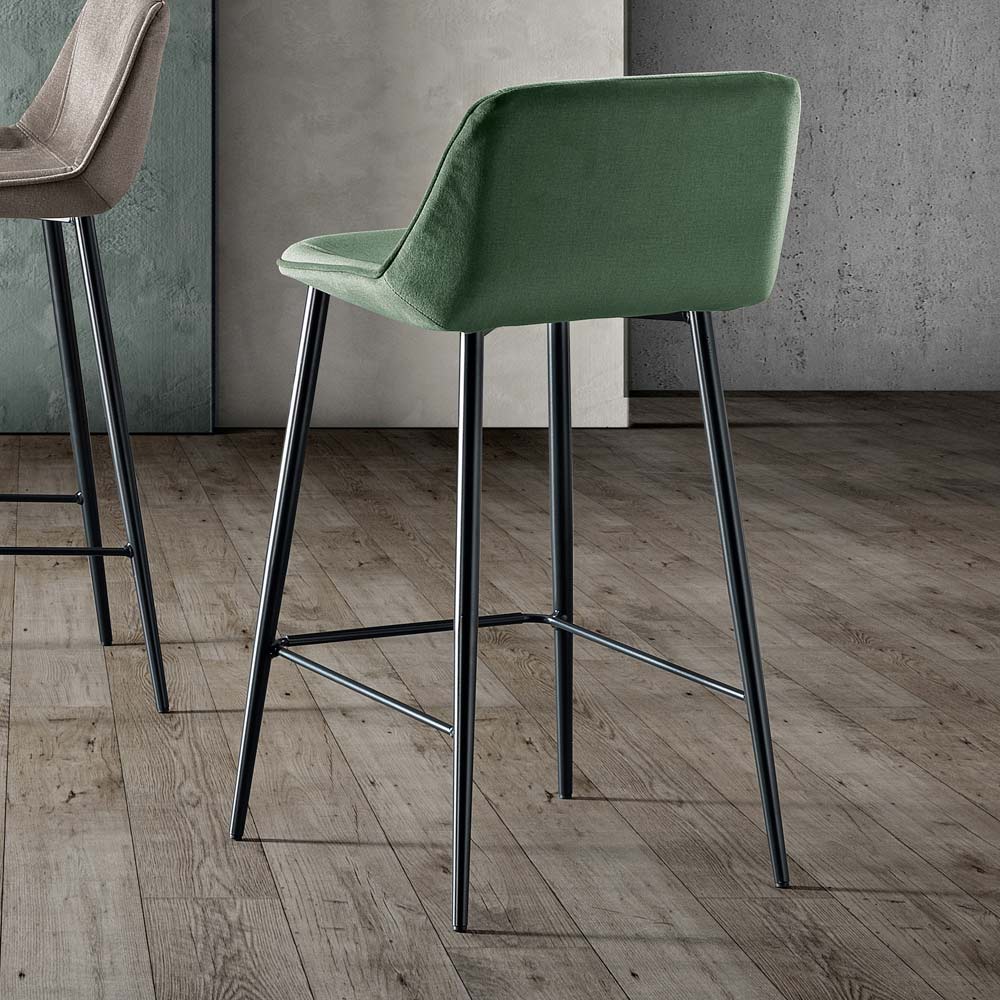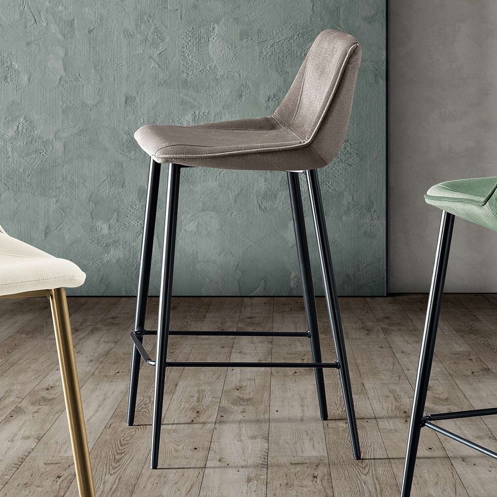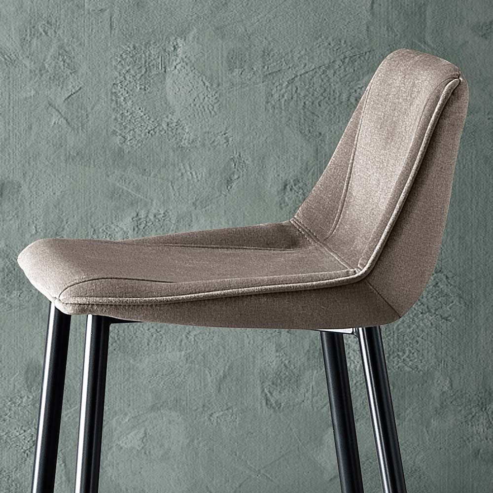 Deze kruk met zijn slanke design en zachte zitting staat voor tijdloze elegantie. Het profiel is uitnodigend en de vulling, samen met de ergonomische lijnen, zorgt voor langdurig comfort en nodigt uit tot lange momenten van gezelligheid of werk.