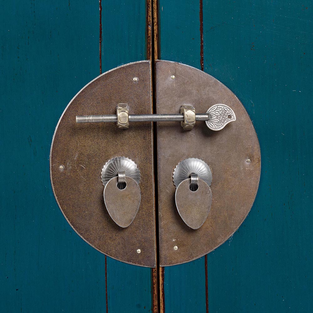Het ontwerp wordt gecompleteerd door de praktische koperen handgrepen op de 2 deuren en op de 2 lades voor een vintage stijl resultaat met een etnisch tintje.