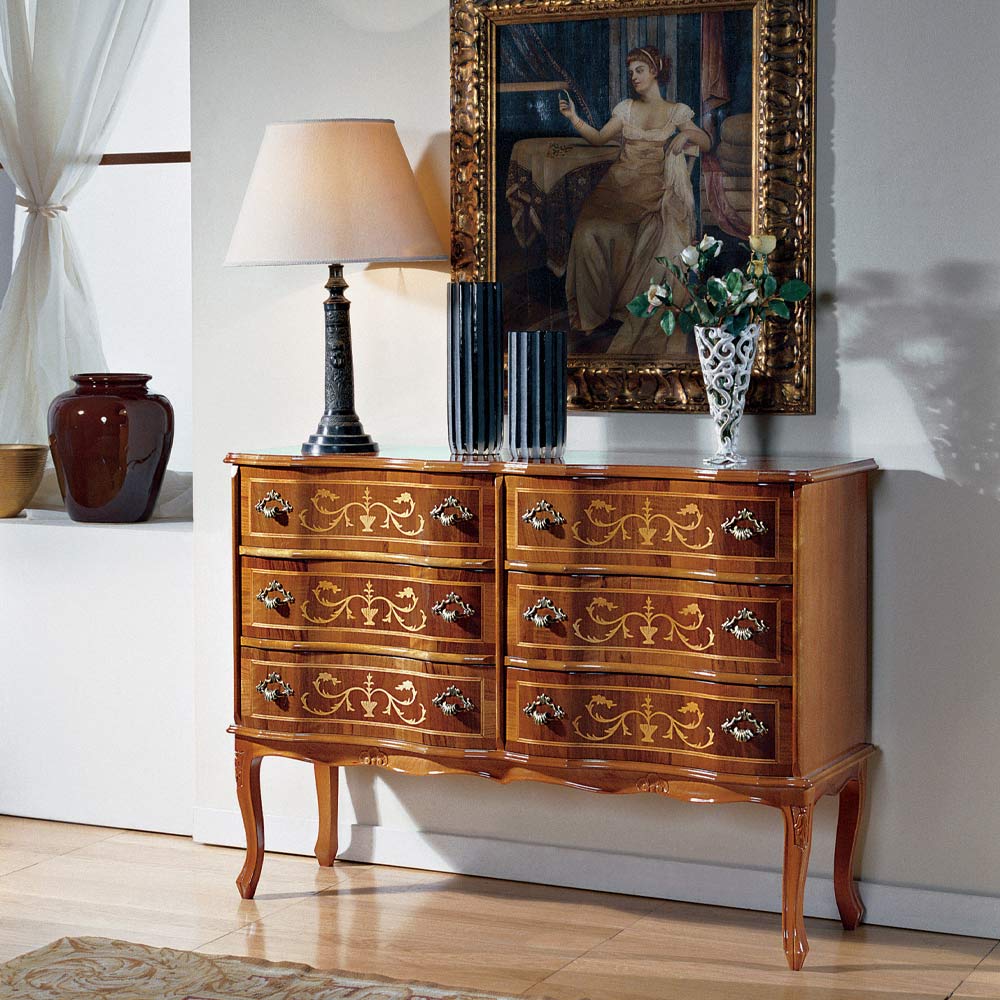 Ladekast in klassieke stijl in hout met 6 lades Made in Italy.