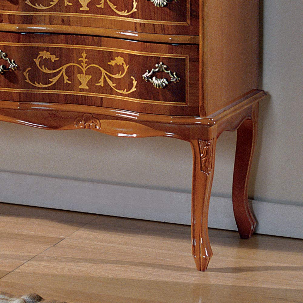 Ladekast in klassieke stijl gemaakt van kostbaar gepolijst walnoothout met gouden inleg . Dit praktische en verfijnde meubel met 6 lades is volledig gemaakt in Italië en handgemaakt door bekwame meesters , afgewerkt met vaardigheid en smaak voor elegantie. De productie wordt uitgevoerd met behulp van fijne materialen en het werk wordt met de hand uitgevoerd met de grootste zorg en professionaliteit die Made in Italy- producten onderscheidt.