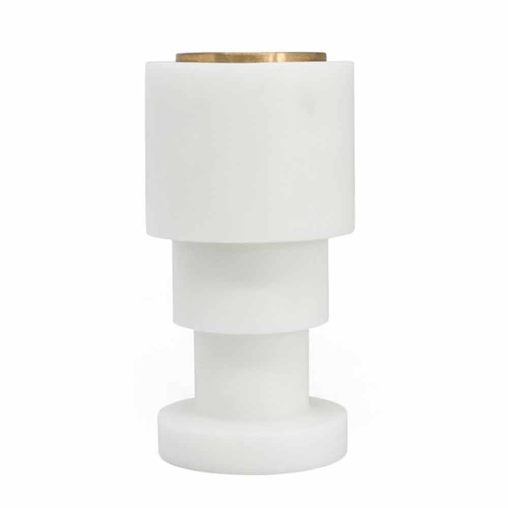 Lage kandelaar gemaakt van hoogwaardig wit Carrara marmer en messing . Het is een uniek stuk omdat elk blok marmer dat wordt gebruikt, verschilt van de andere wat betreft aders en tinten. Het marmer is afkomstig uit de steengroeve Poggio Silvestre, een bron van eerste kwaliteit wit marmer dat sinds de vorige eeuw is geclassificeerd.
