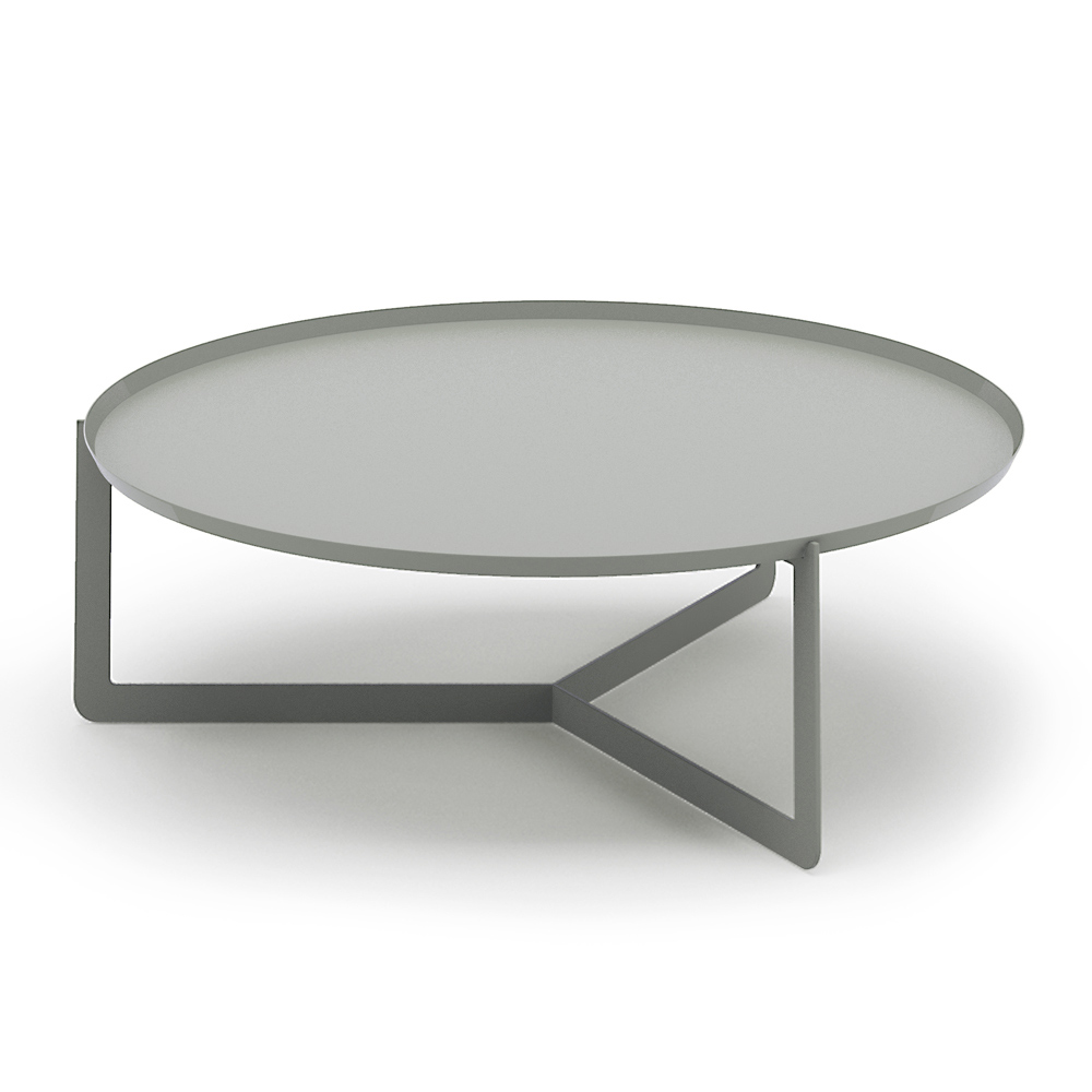 Moderne ronde tuinsalontafel van metaal, een waardevol item gemaakt in Italië.