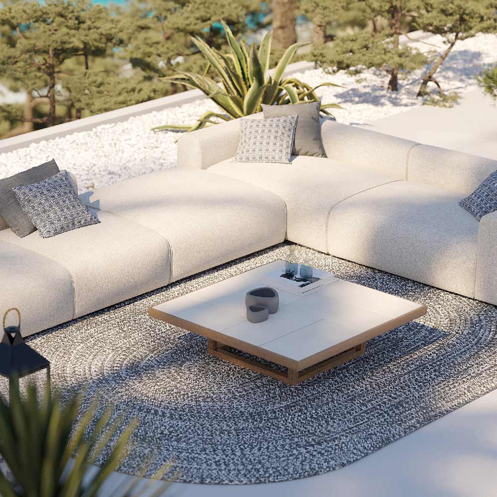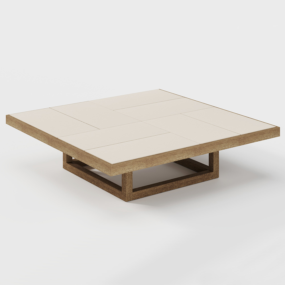 Lage tuinsalontafel in Iroko-hout en blad in steengoedplaten Made in Italy