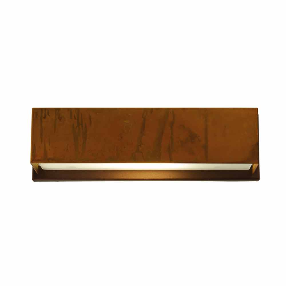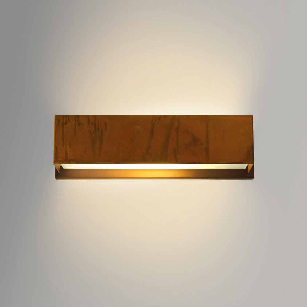Wandlamp met messing structuur geoxideerd en sub-base in poedervorm staal. Verkrijgbaar in twee maten in vierkante of ronde vorm. diffuser voor lichtemissie direct en indirect getemperd.