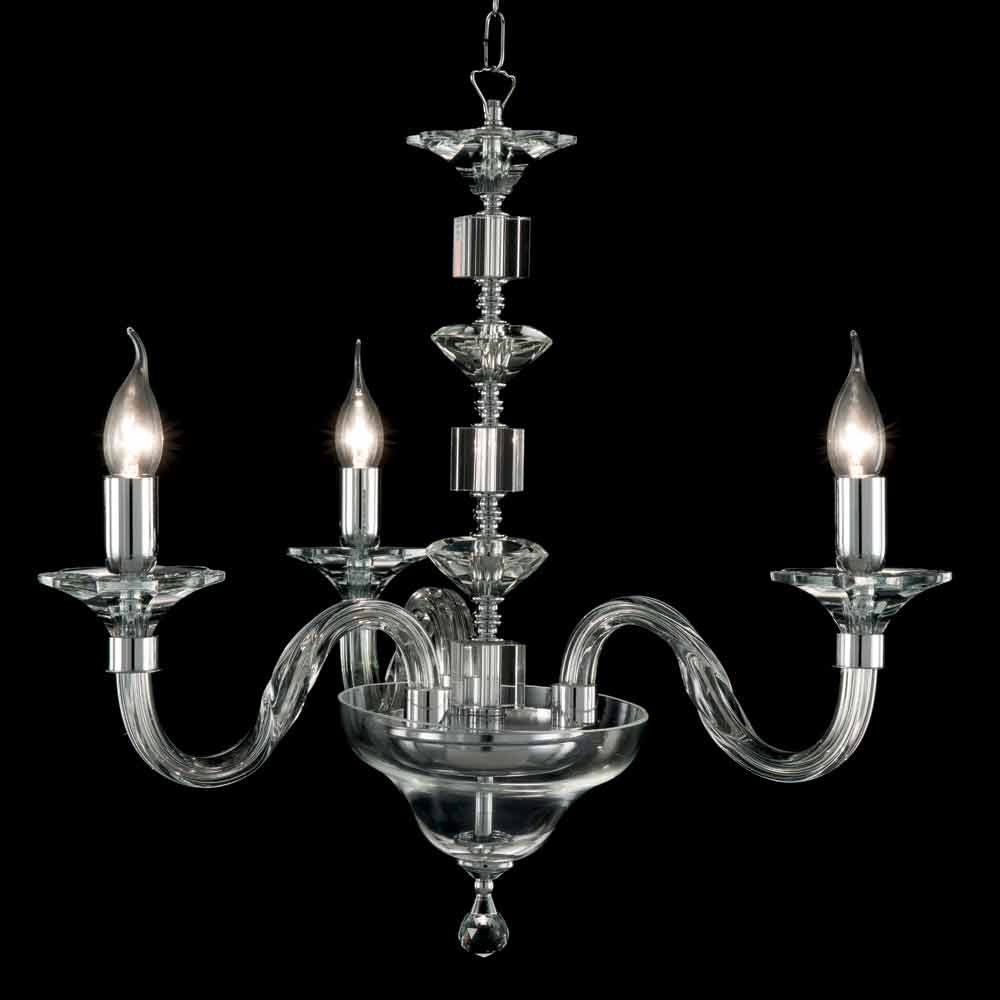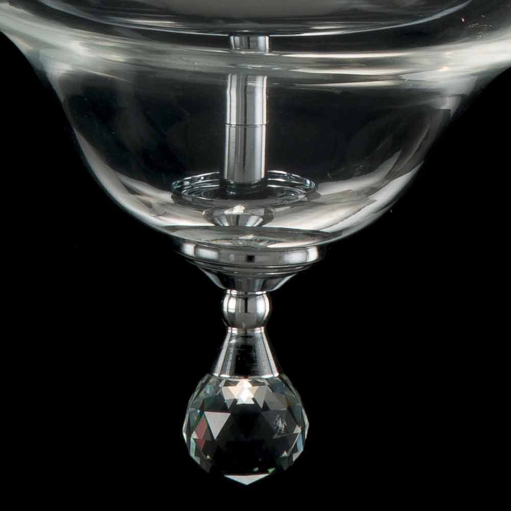 Handgemaakte transparant glazen kroonluchter met kristallen decoraties. Verchroomde afwerkingen.