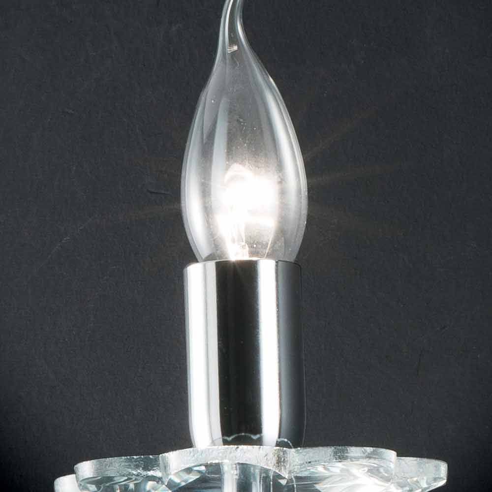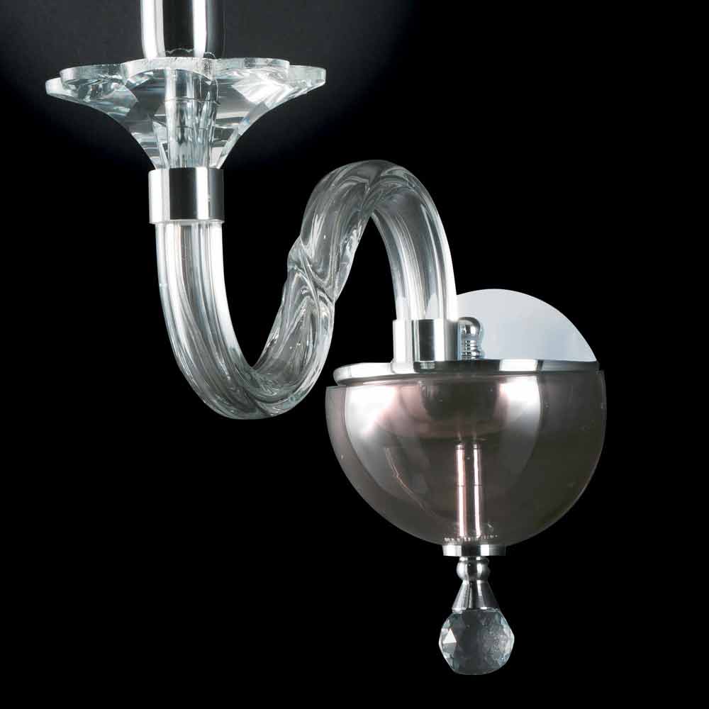 Wandlamp in transparant glas, handgemaakt met kristallen decoraties. Chromen elementen.