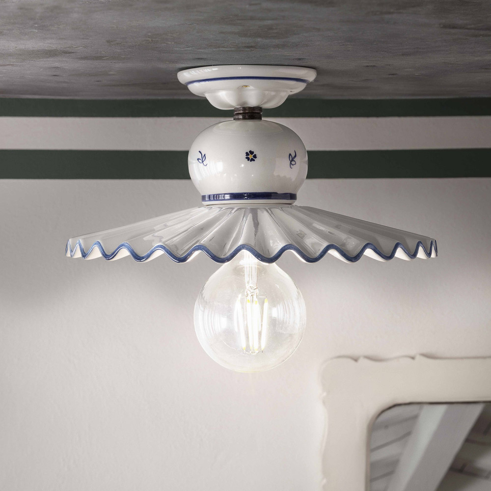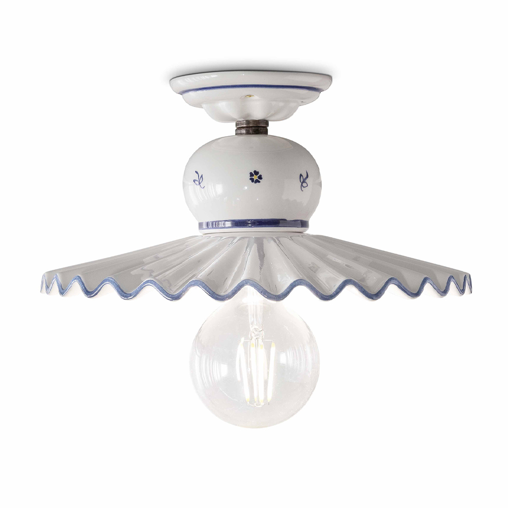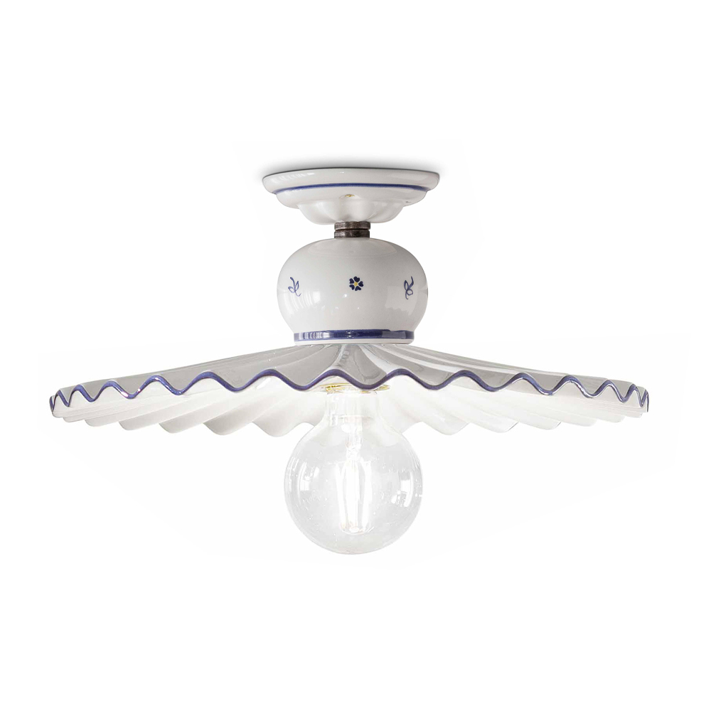 Handgemaakte plafondlamp van metaal en handbeschilderd keramiek, 2 maten gemaakt in Italië door Ferroluce.