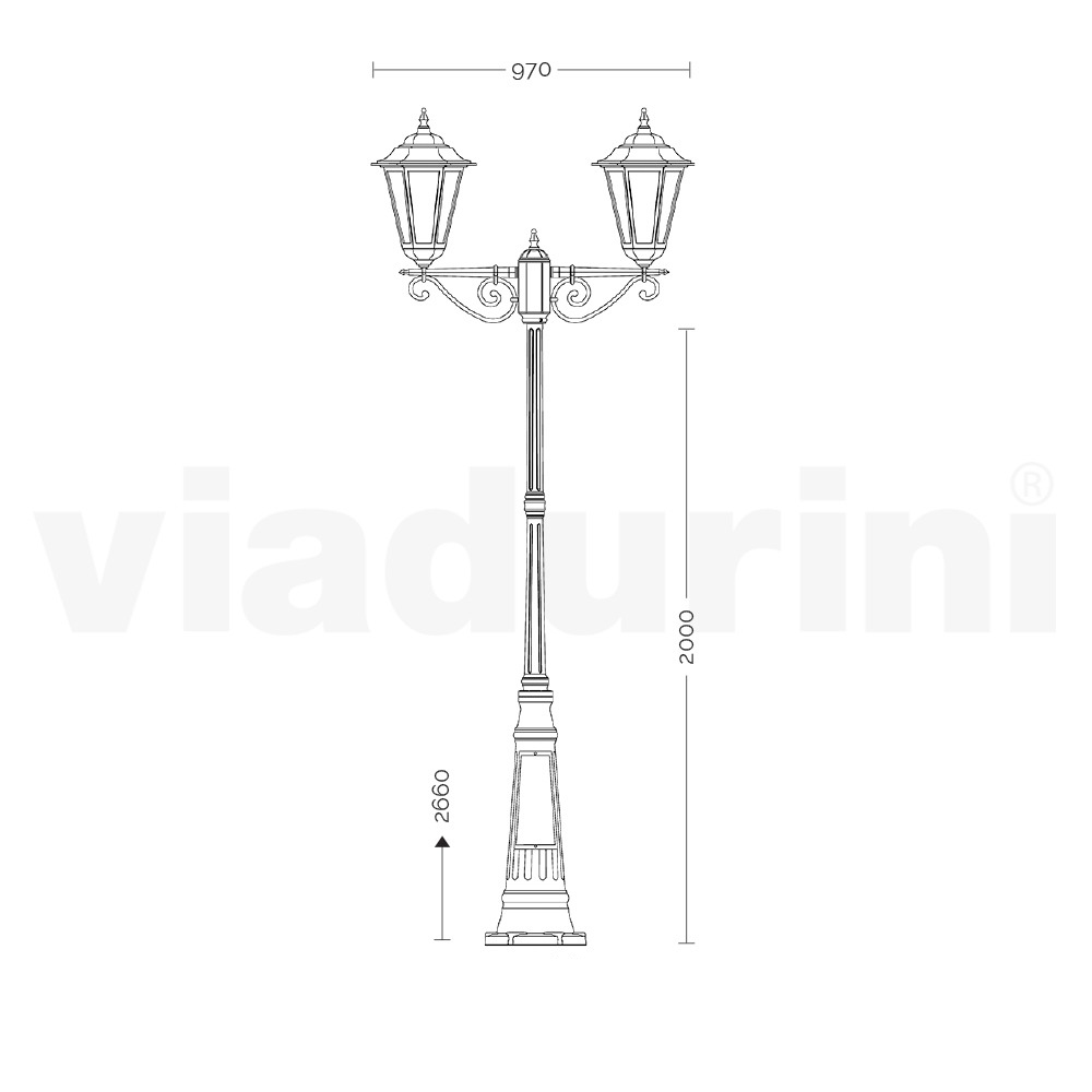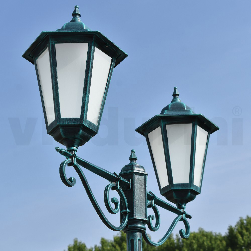 2-lichts vintage stijl aluminium straatlantaarn met glazen diffuser Made in Italy.