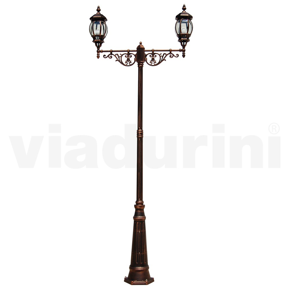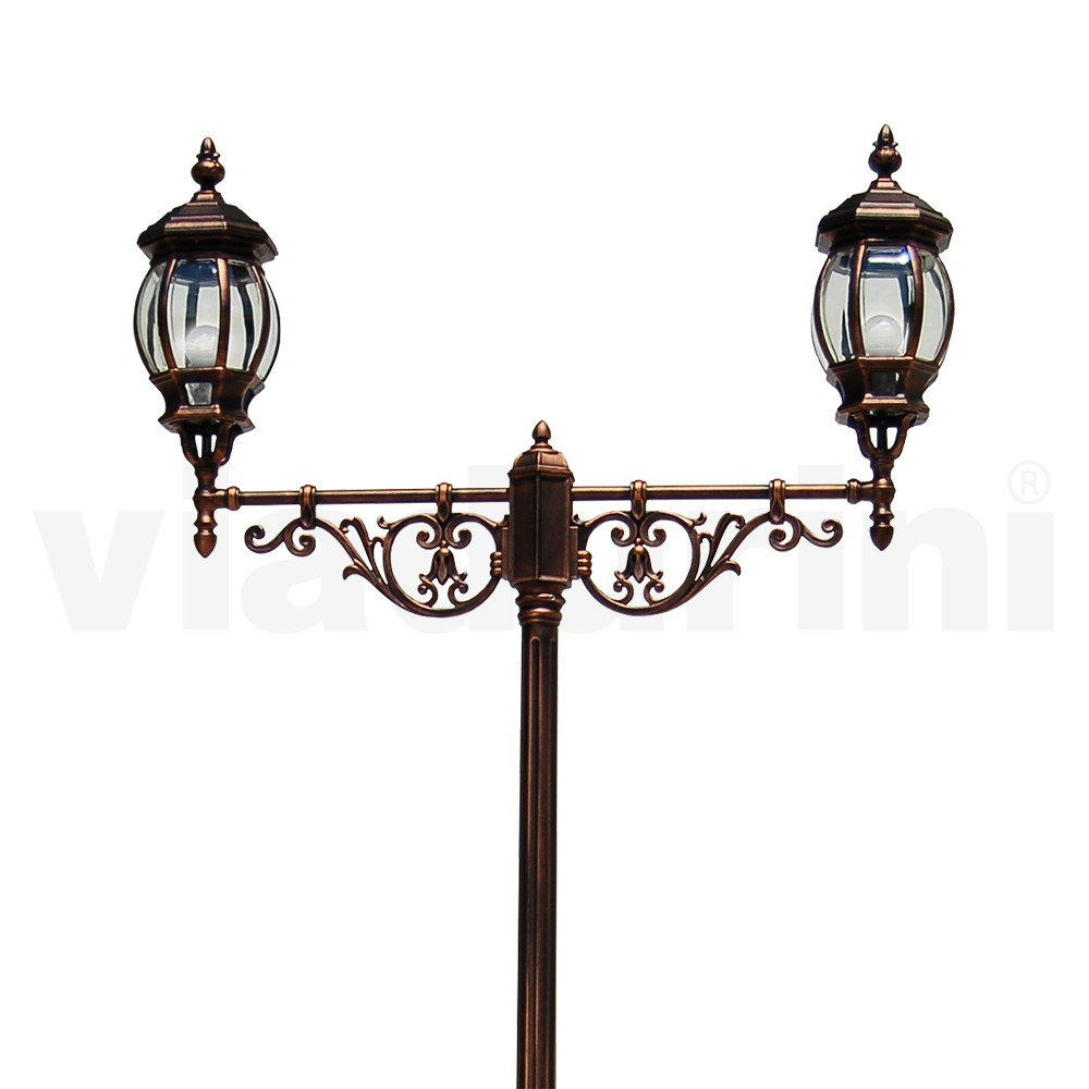 Straatlantaarn in vintage stijl met 2 lampen met aluminium structuur Made in Italy.