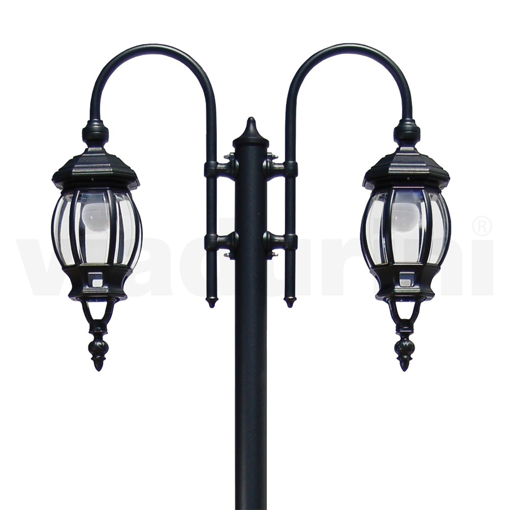 Vintage straatlamp 2 lampen in antraciet aluminium en polycarbonaat Made in Italy.