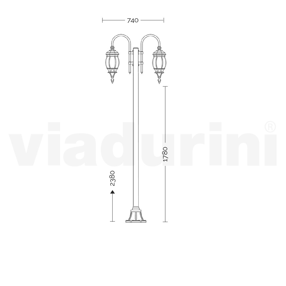 2-lichts tuinlamp gemaakt door 100% Made in Italy productie in gegoten aluminium in antracietgrijze afwerking met transparante polycarbonaat diffuser. Compleet met RVS schroeven. Een meubelaccessoire voor buitenruimtes met een sterke vintage persoonlijkheid en een romantische stijl , gekenmerkt door prachtige verfijnde en zorgvuldig vervaardigde details die de elegantie ervan onderstrepen. Ideaal voor buitenomgevingen zoals tuinen, lanen, looppaden of buitencontractruimtes zoals bars en restaurants.