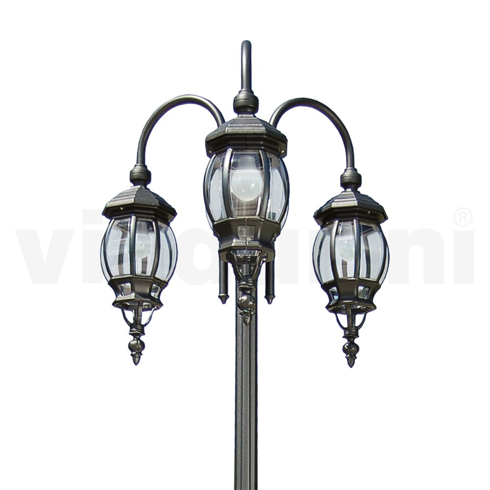 3-lichts straatlamp in vintage stijl in antraciet aluminium en polycarbonaat Made in Italy.
