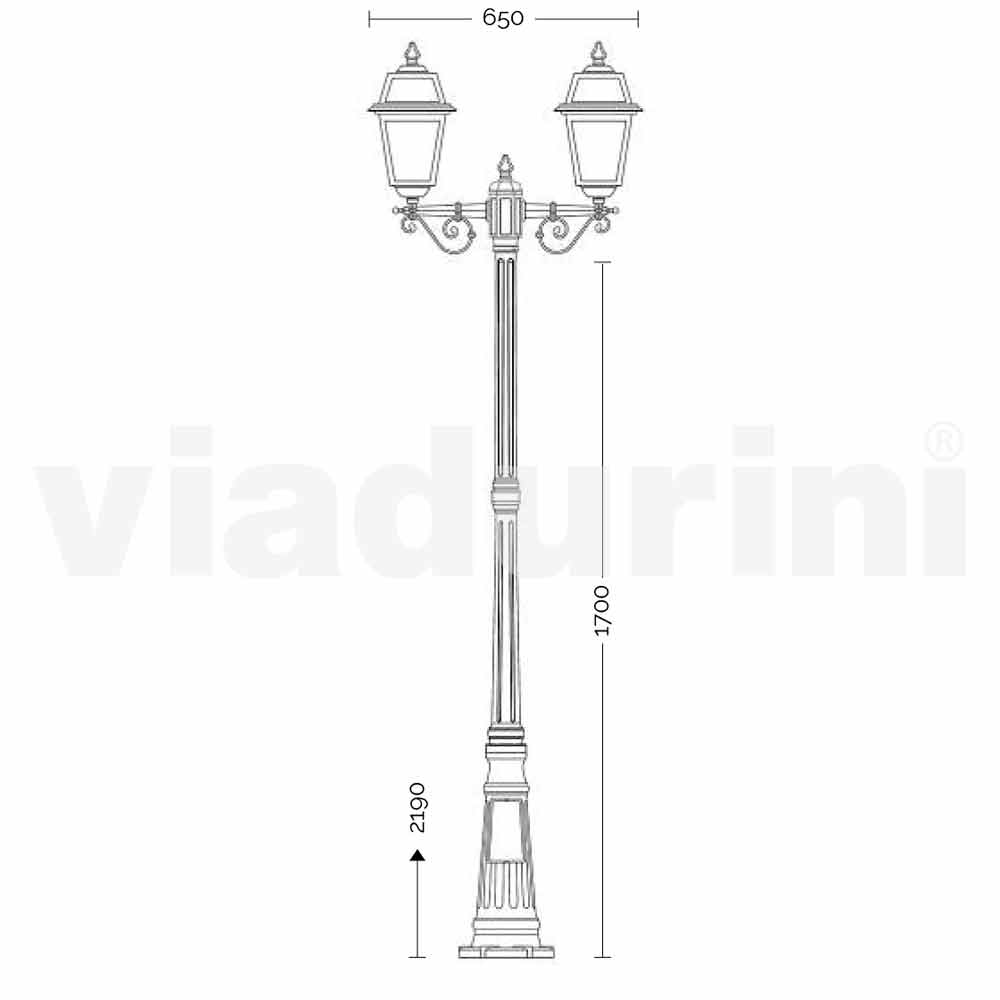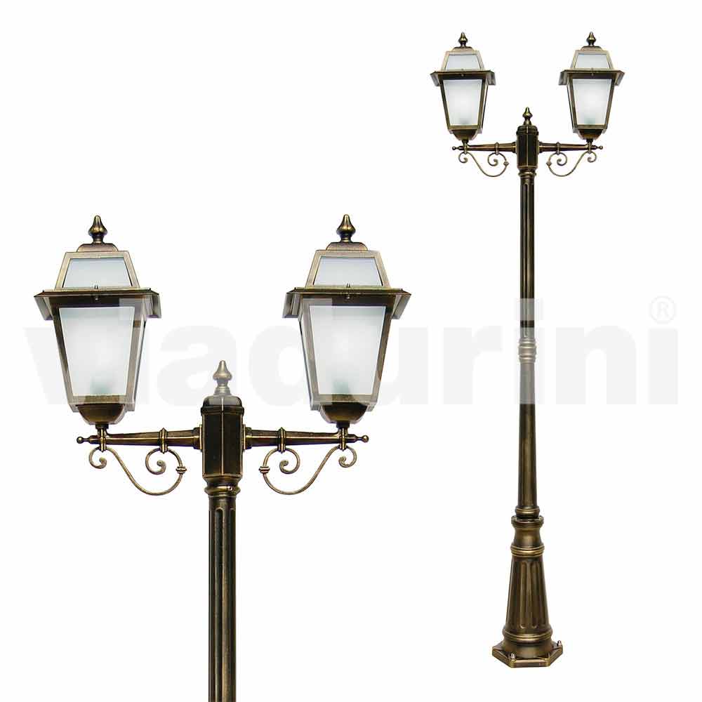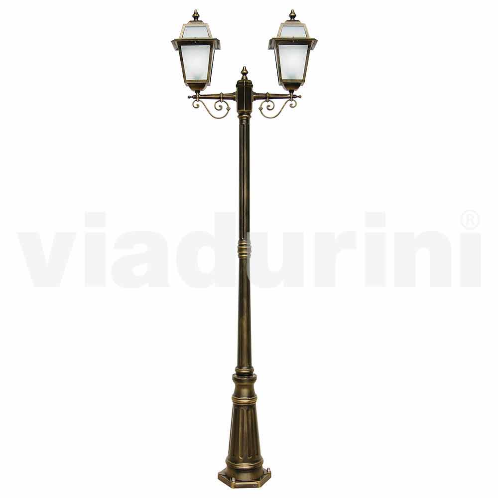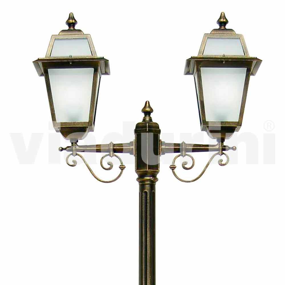 Kristel is een tweelichts buitenlantaarnpaal, handgemaakt in Italië met hoogwaardig materiaal: gegoten aluminium structuur en glazen diffuser verkrijgbaar: transparant of gezandstraald.