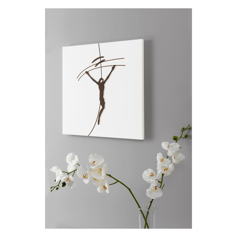 Eenvoudige en essentiële lijnen karakteriseren de afbeelding van de kruisiging van Jezus Christus met een nieuwe en originele interpretatie van het kruis dat dit product uniek maakt in zijn soort. De bekwame handen van Italiaanse ambachtslieden hebben dit schilderij gemaakt met aandacht voor elk detail.