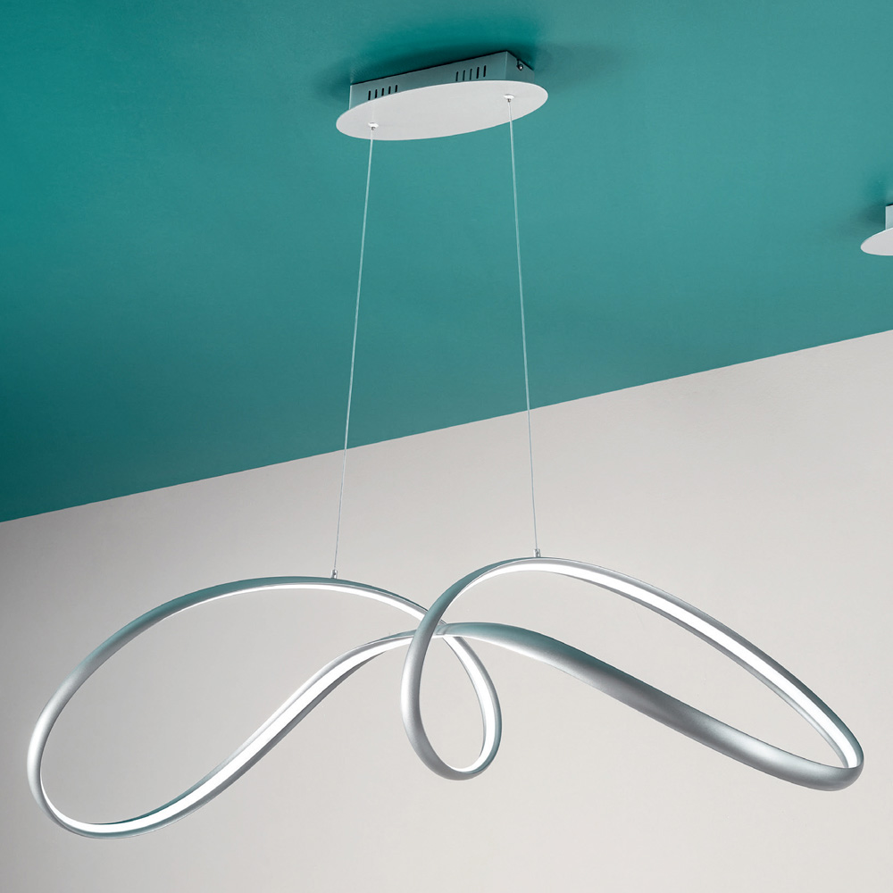 LED hanglamp in zilver metaal en polymeer, modern design in twee dimensies.