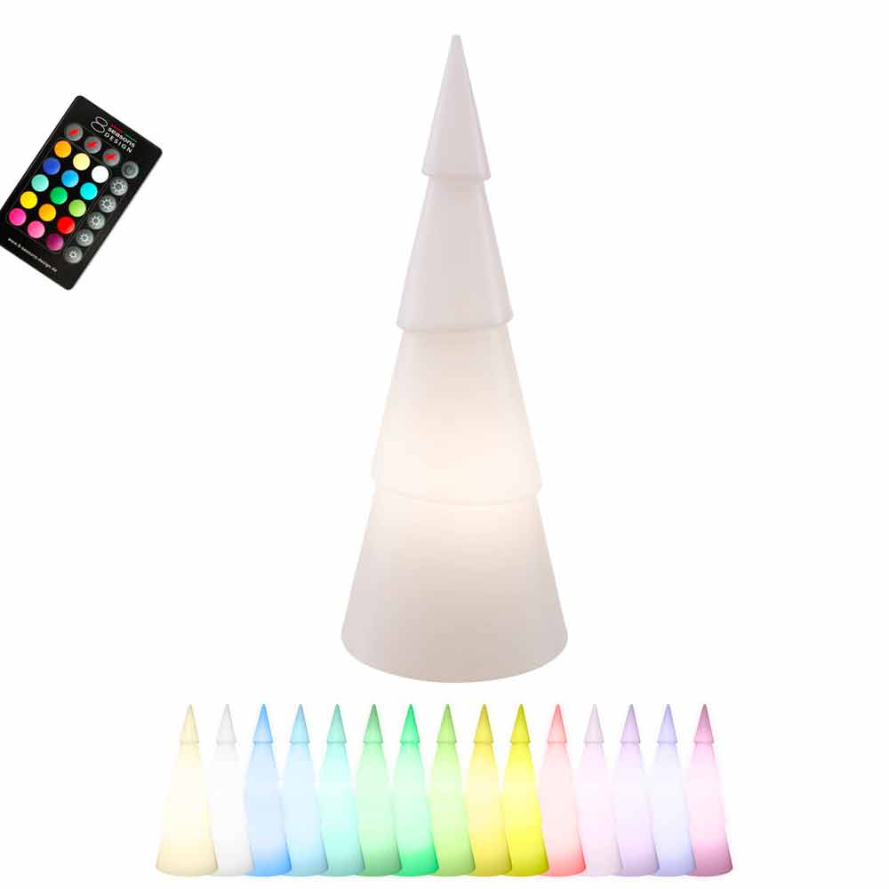 LED of solar design vloerlamp in de vorm van een conische kerstboom in 3 maten voor binnen of buiten.