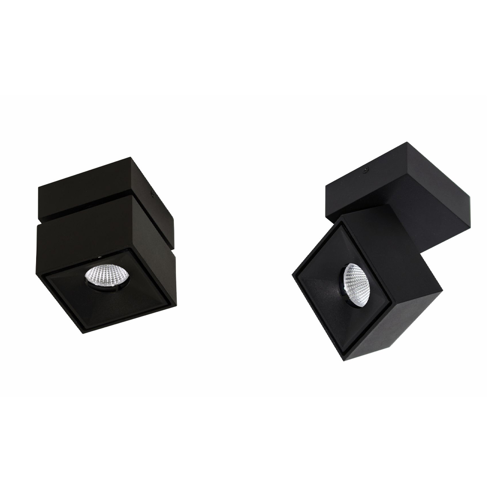 Vierkante plafond- of wandspot met witte of zwarte aluminium led.
