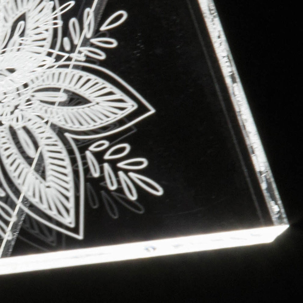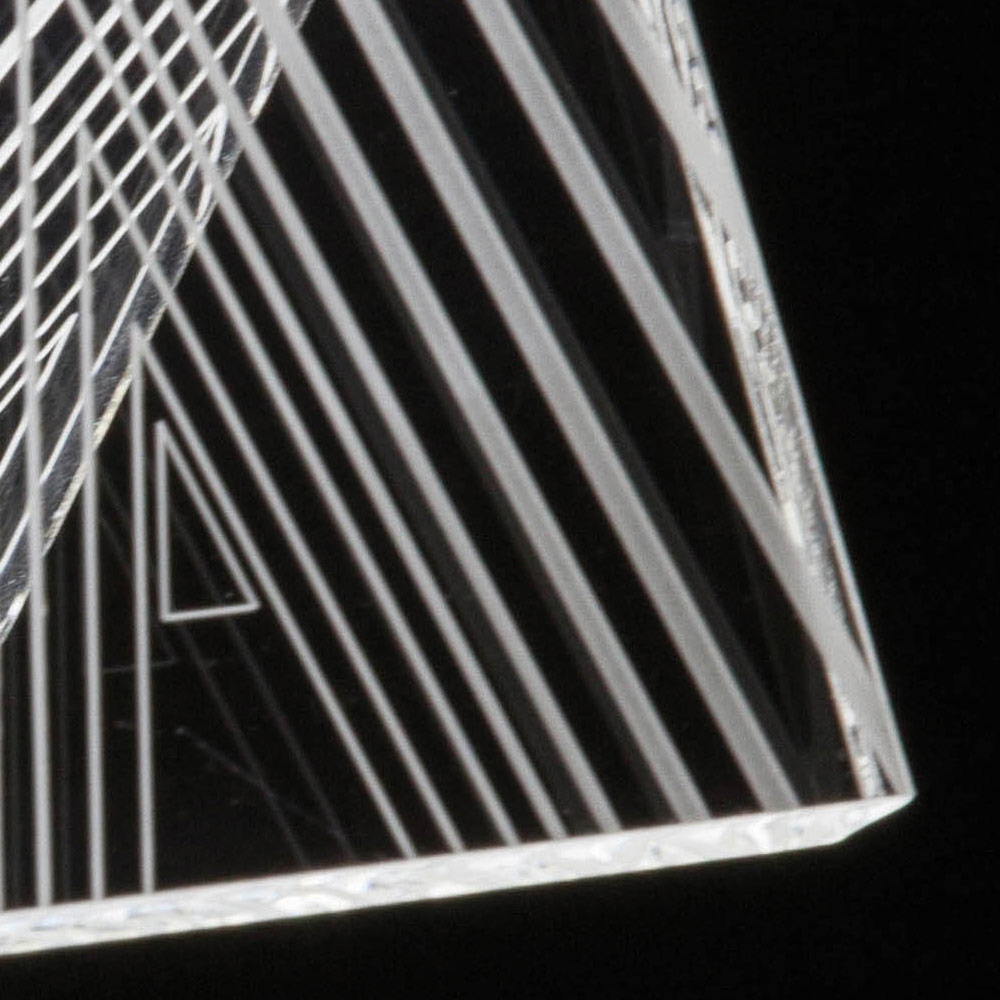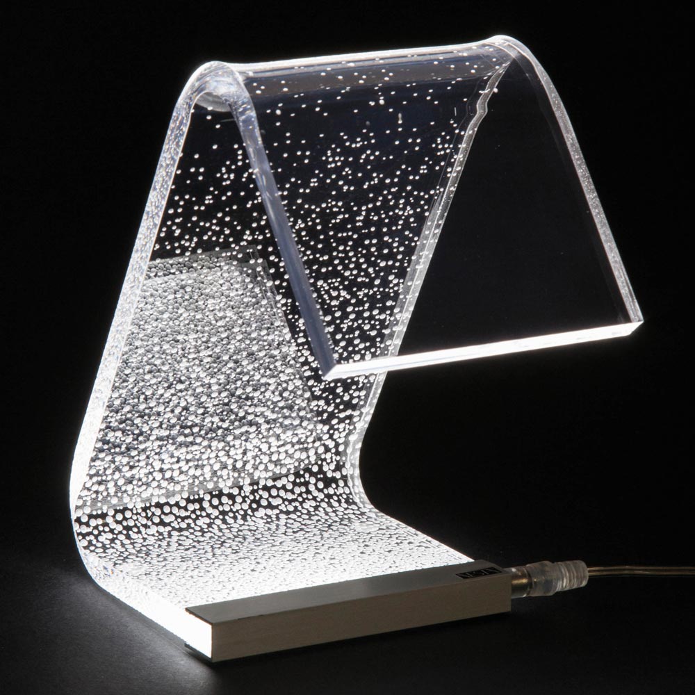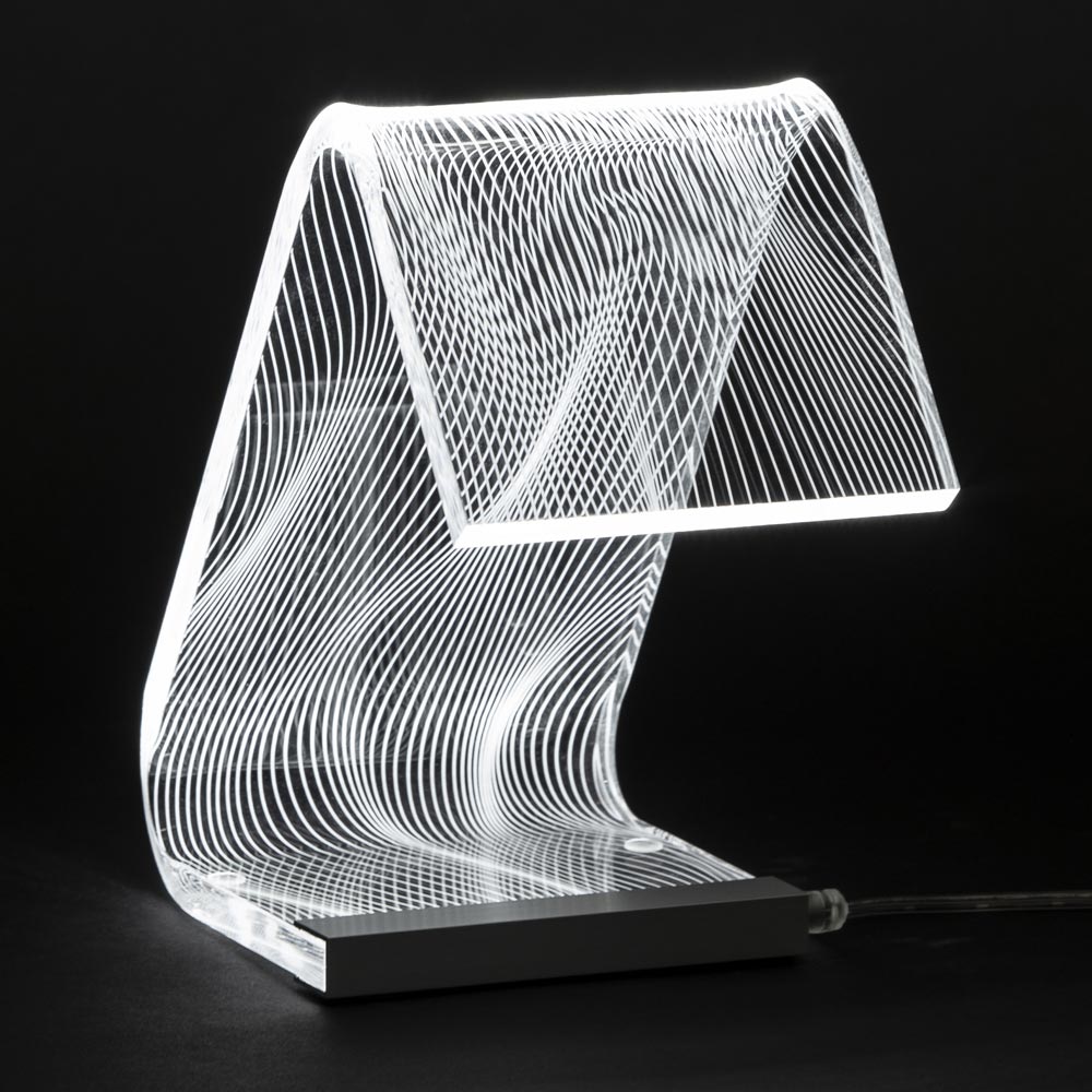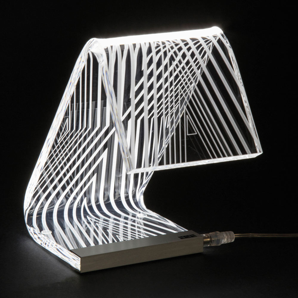 Tafellamp van transparant acrylkristal met laserdecoraties, 2 maten gemaakt in Italië.