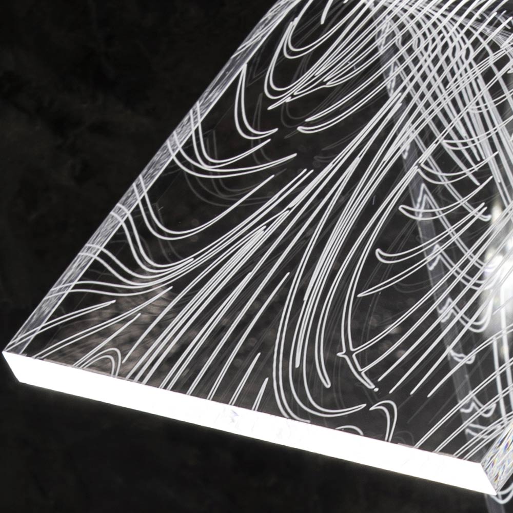 handgebogen acrylkristal met een dikte van 10 mm en wordt gekenmerkt door