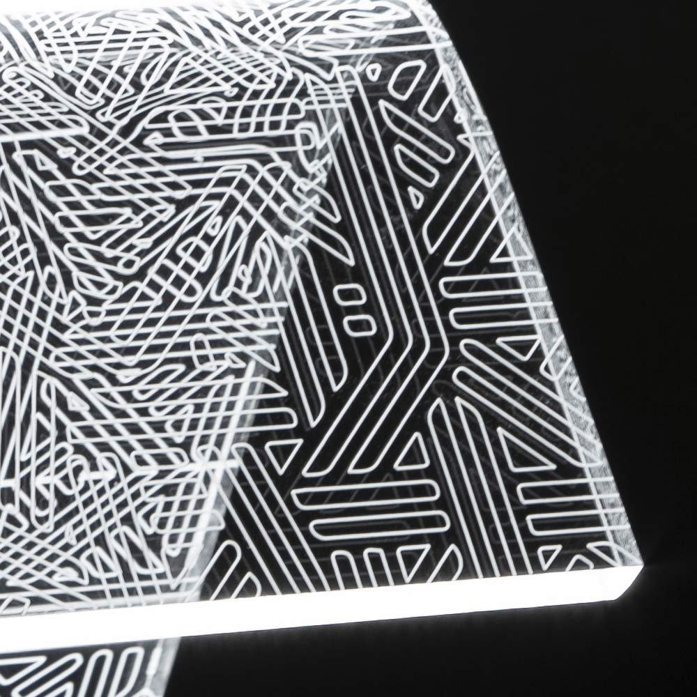 lasergravures op het oppervlak die, via een aan de basis geplaatste