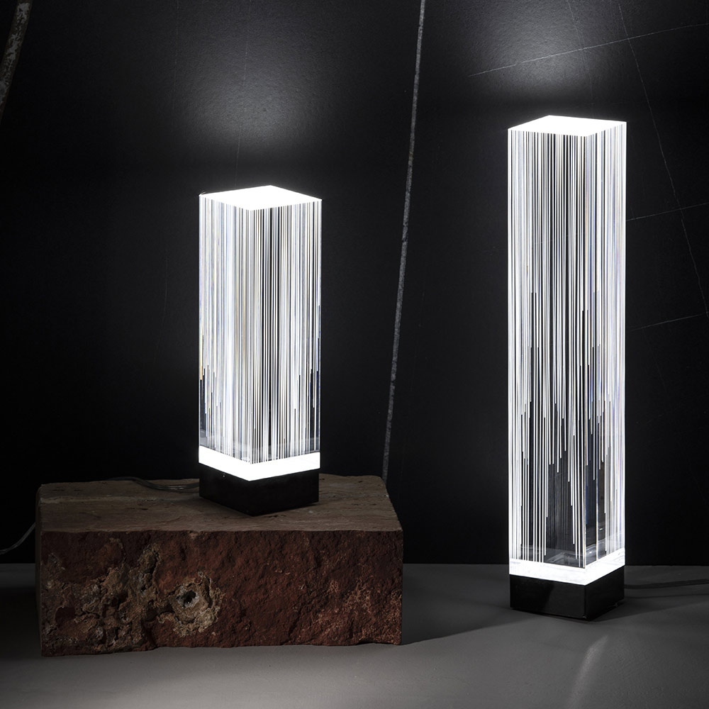 LED-werklamp in lasergegraveerd acrylkristal, 2 maten gemaakt in Italië.