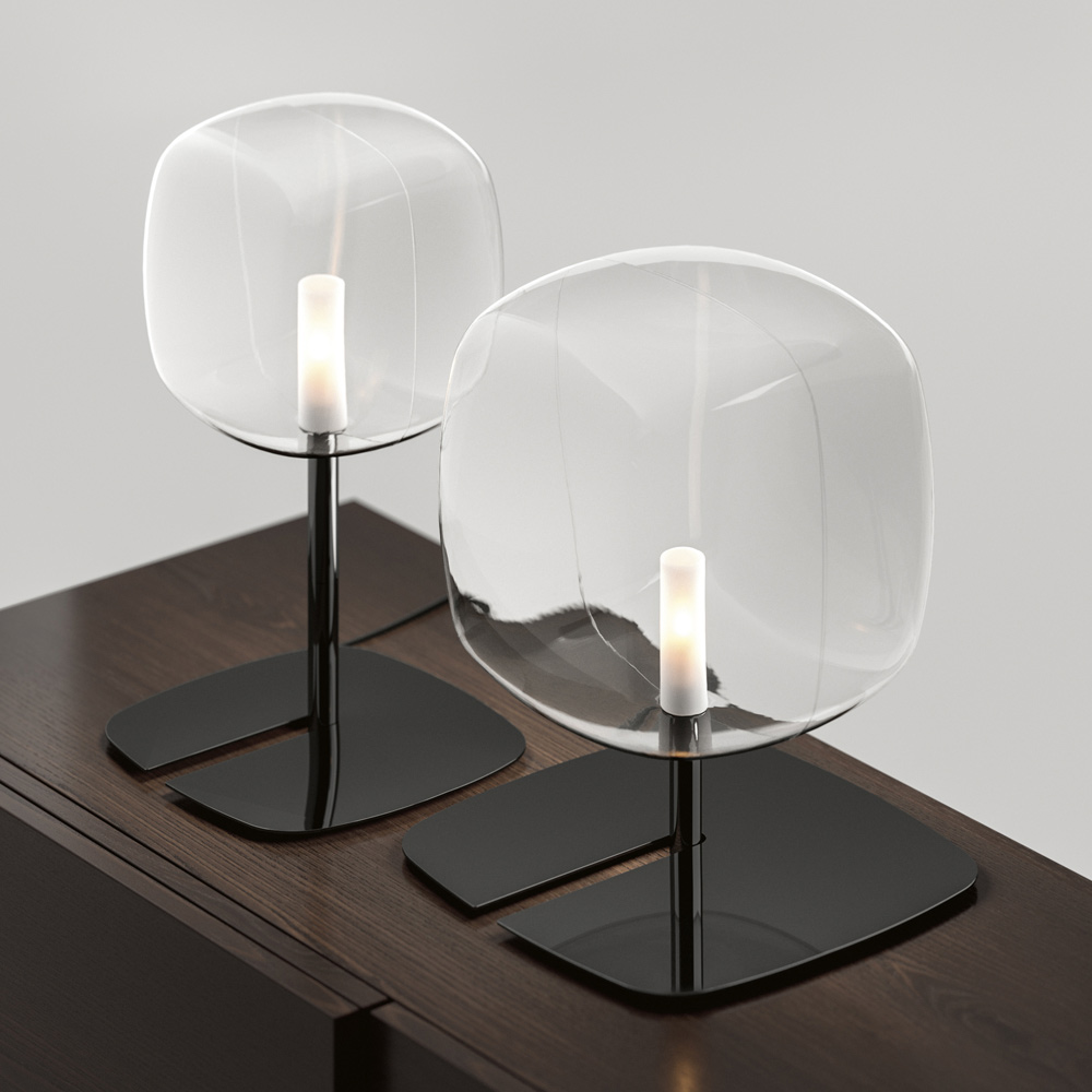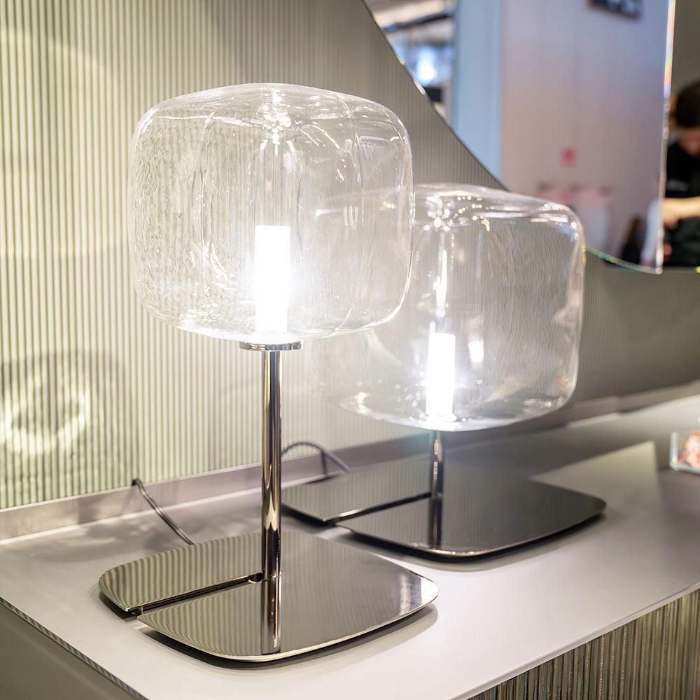 LED tafellamp in transparant glas en metaal Made in Italy.