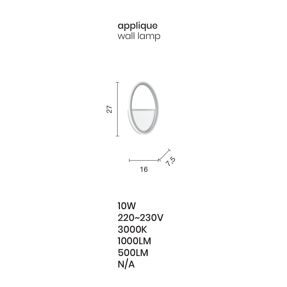 Wandlamp in metaal met diffusor in acryl en siliconen LED.