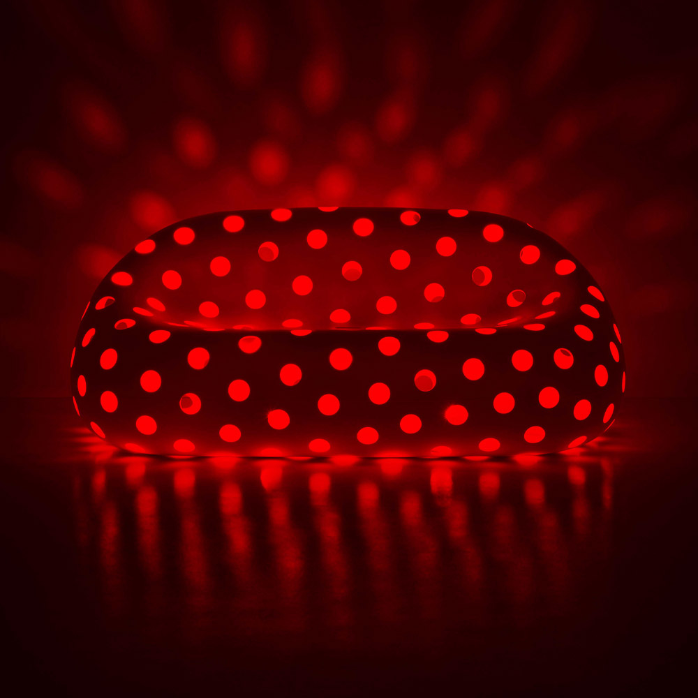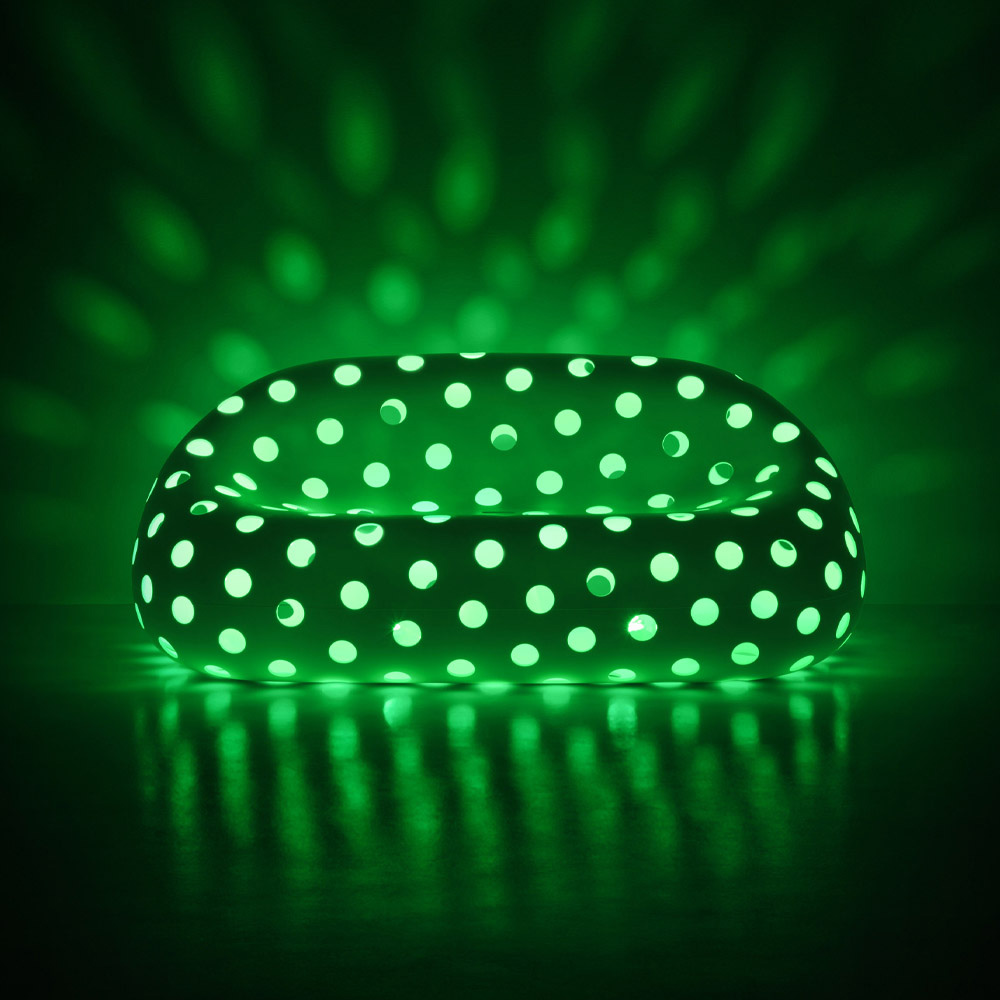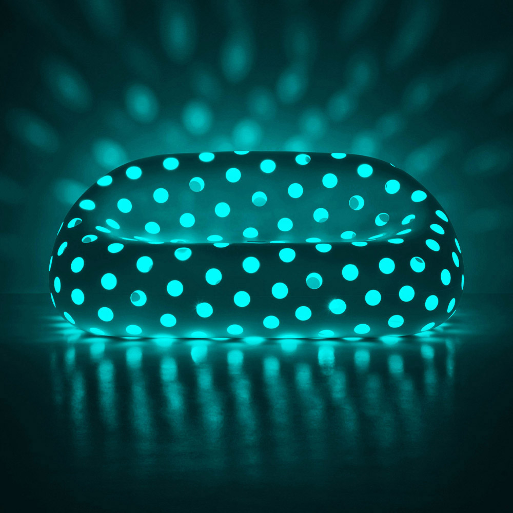 Tuinbank gemaakt in Italië in ondoorzichtig wit polyethyleen, compleet met gekleurde RGB LED-verlichtingsset voor buitengebruik. Een origineel inrichtingsidee waarvan het figuur wordt gekenmerkt door comfortabele en moderne lijnen die samen met LED-verlichting de perfecte combinatie van functionaliteit en design mogelijk maken . De matte afwerking maakt hem bijzonder goed bestand tegen de zon, schokken en hitte, maar ook uiterst elegant en met een verfijnde esthetiek. Het unieke en innovatieve ontwerp dat de vormen benadrukt, heeft een grote landschappelijke impact en maakt het ideaal voor buitenomgevingen die een inrichtingsoplossing met een sterke persoonlijkheid nodig hebben. Het geperforeerde oppervlak geeft een ongekende lichtheid aan de bank, waardoor een spectaculair lichtspel ontstaat dankzij de lichtbron die erin is geplaatst.