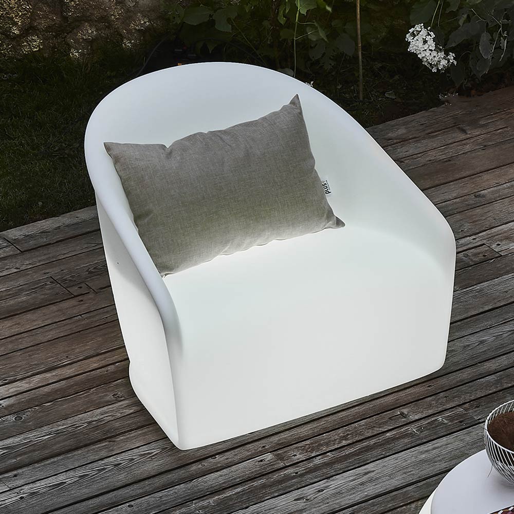 Heldere buitenfauteuil in ondoorzichtig polyethyleen met LED gemaakt in Italië.