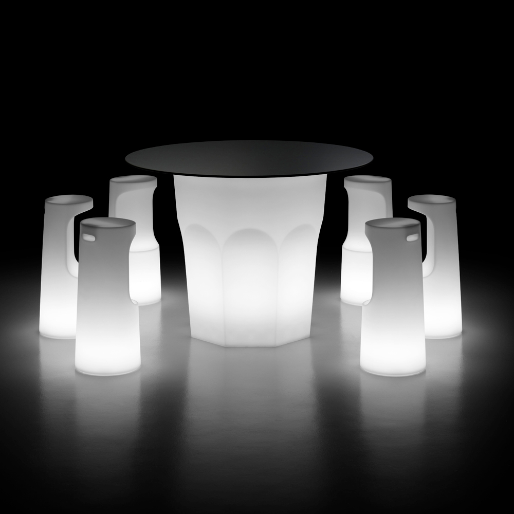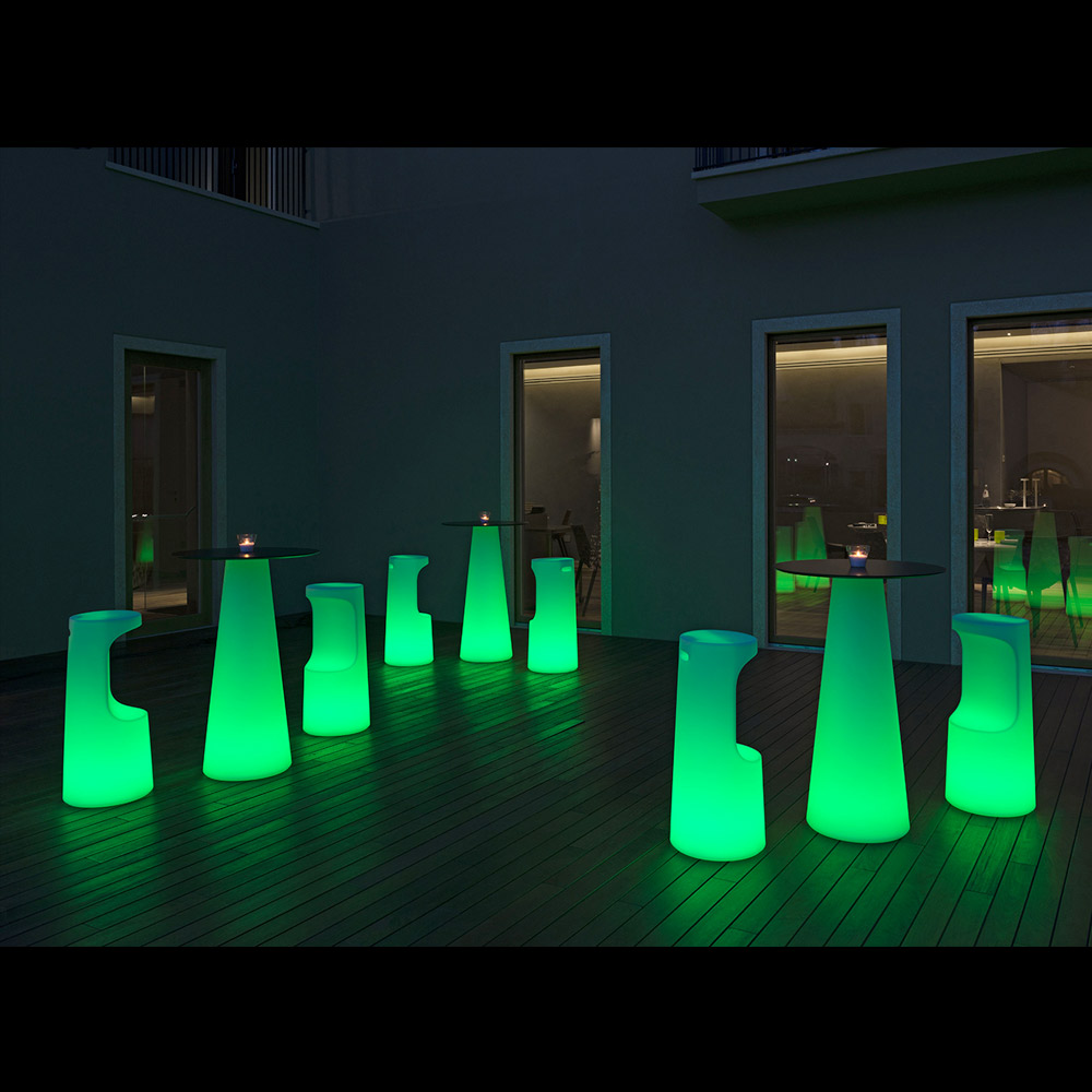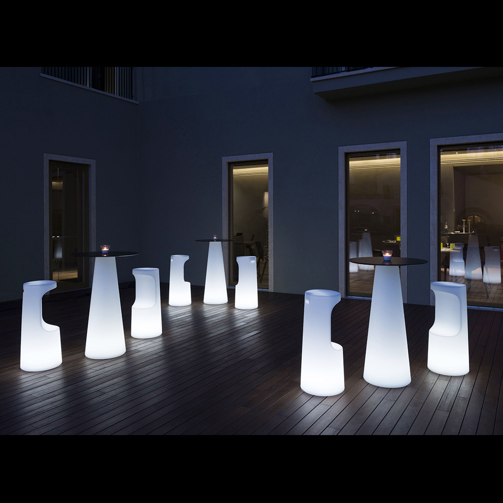 Hoge design kruk in polyethyleen voor buitengebruik met LED-licht Made in Italy.
