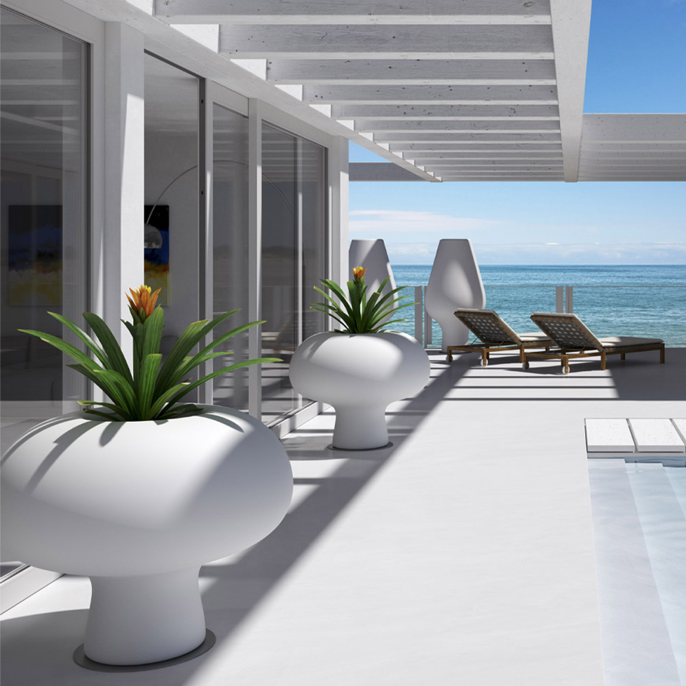 Lichtgevende tuinvaas volledig gemaakt in Italië in ondoorzichtig polyethyleen,compleet met led-verlichtingsset . Een totemische aanvulling met imposante vormen die doet denken aan de gestileerde figuur van een bloemig element. De esthetiek creëert een omgeving met een grote emotionele impact, die het beeld oproept van een extra groot gazon om leven te geven aan een originele en tegelijkertijd elegante sfeer met verfijnd minimalisme . Dankzij de LED-verlichting is hij bijzonder geschikt voor het creëren van high-impact lichtpunten in zowel klassieke als hedendaagse buitenomgevingen zoals tuinen, terrassen, veranda's of open contractruimtes. Compleet met stabilisatie en bevestigingsbasis .