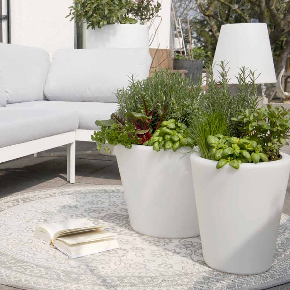 Heldere vaas voor binnen of buiten van kleurrijk en modern design met E27 aansluiting van verschillende afmetingen.