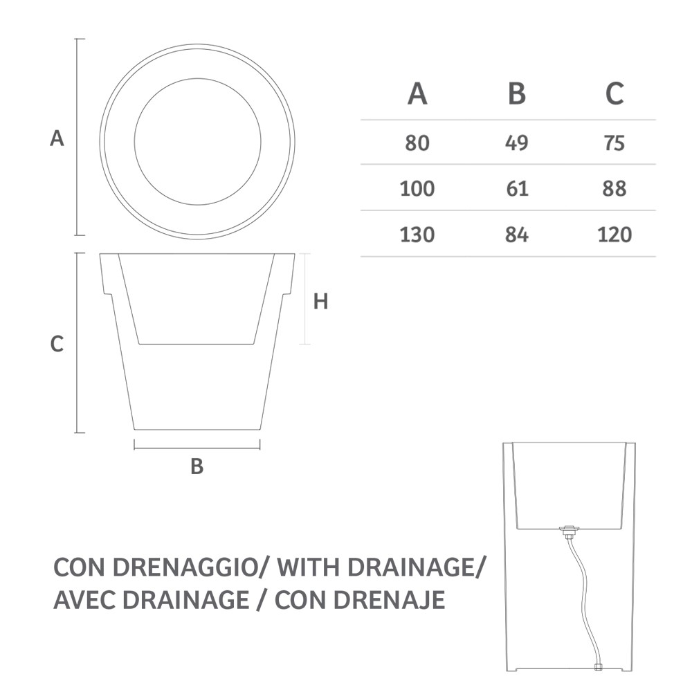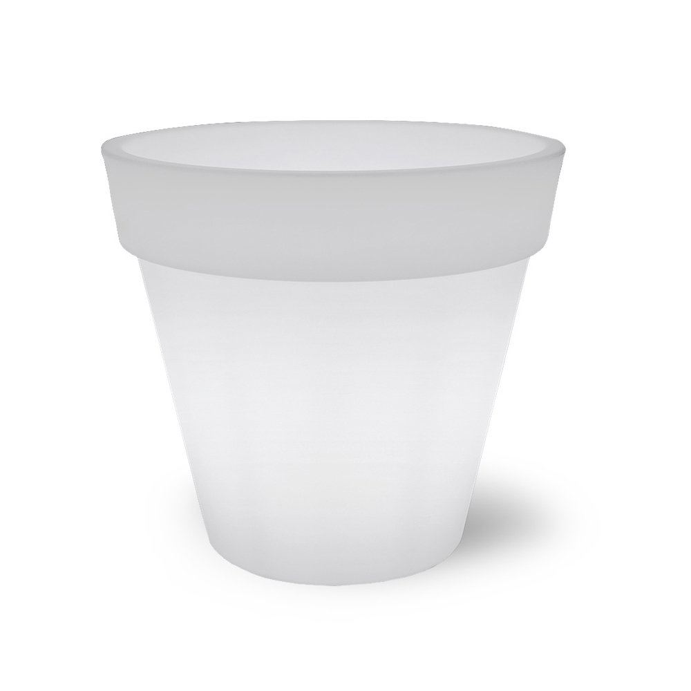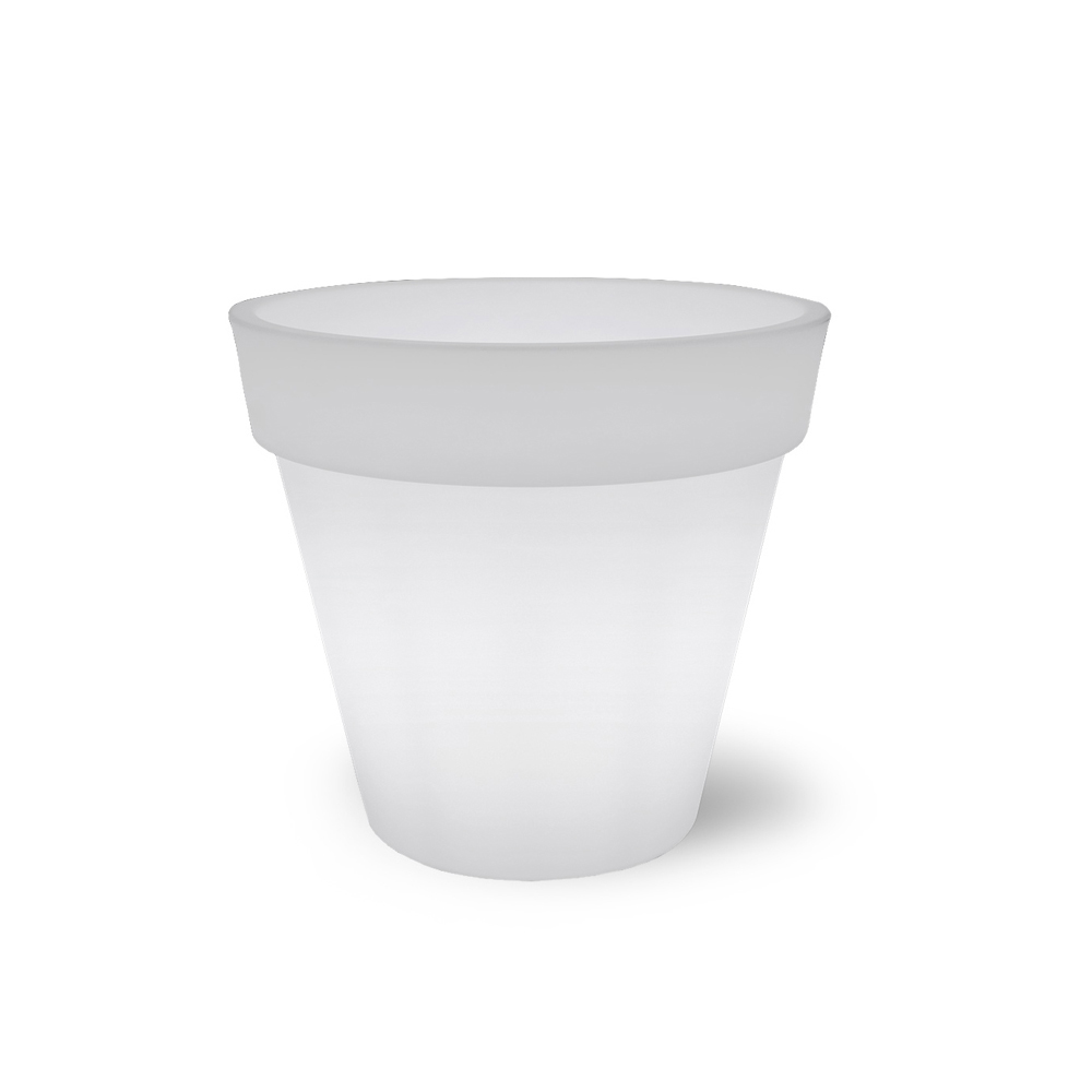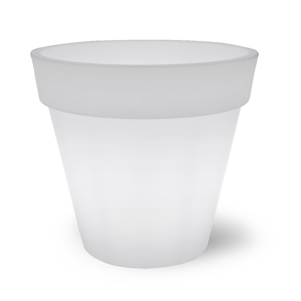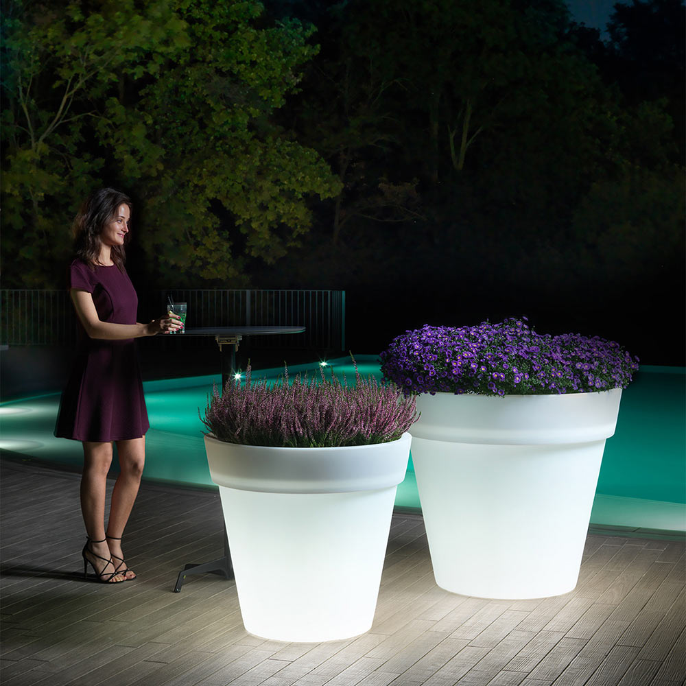 De lichtgevende buitenvaas van parelmoerpolyethyleen , gemaakt in Italië, is verkrijgbaar in verschillende maten om de leefruimte buiten in te richten met persoonlijkheid en profiteer van de elegante functionaliteit . De structuur omvat ook een waterafvoerkit, wat deze vaas zeer praktisch maakt zonder het eindresultaat, een stralende sfeer van elegant en suggestief licht, te verwaarlozen. Het geïntegreerde LED-licht maakt van deze buitenvaas een eigentijds meubelaccessoire, met zachte lijnen die een idee van klassieke maar ongelooflijk elegante stijl weerspiegelen.