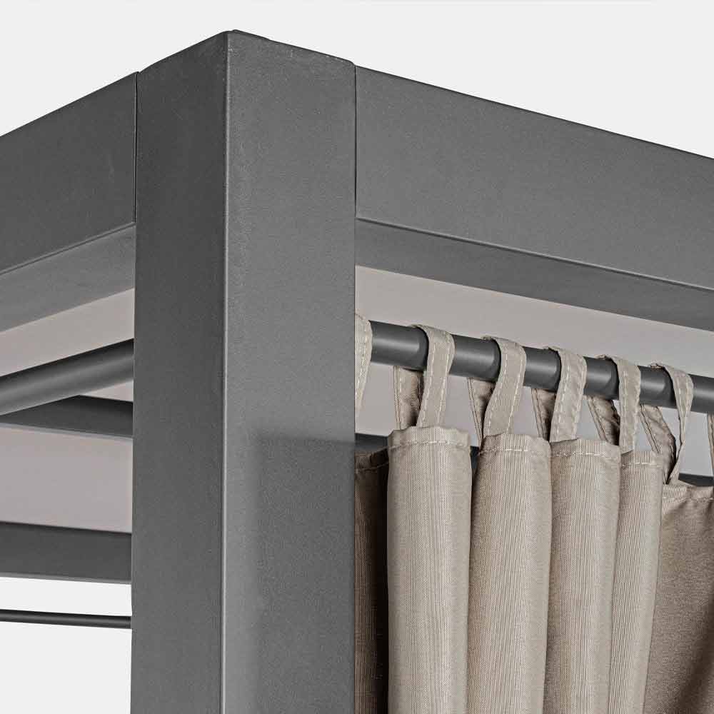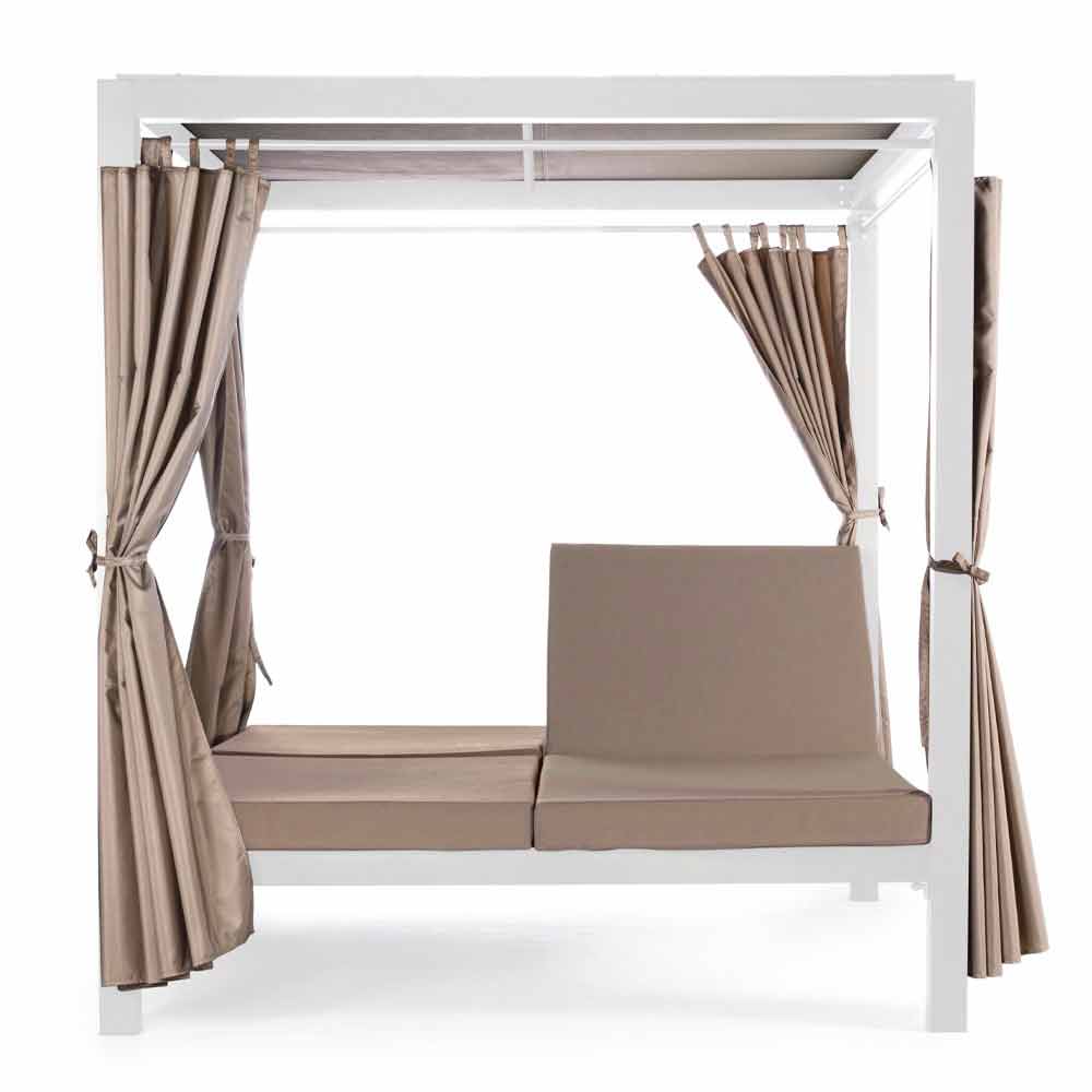 aluminium structuur, 80x80 mm stokken, dakdoek en zitkussens (verwijderbaar) in