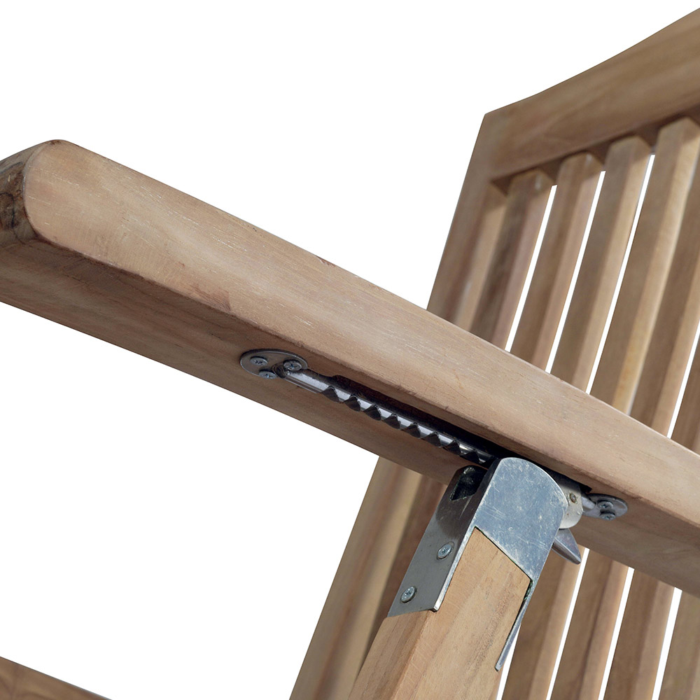 De fauteuil is verstelbaar , zodat u de perfecte positie kunt vinden voor maximaal comfort, of u nu wilt lezen, zonnen of een dutje wilt doen. De ergonomische latten bieden optimale ondersteuning, terwijl de massieve teakstructuur zorgt voor stabiliteit en stevigheid.