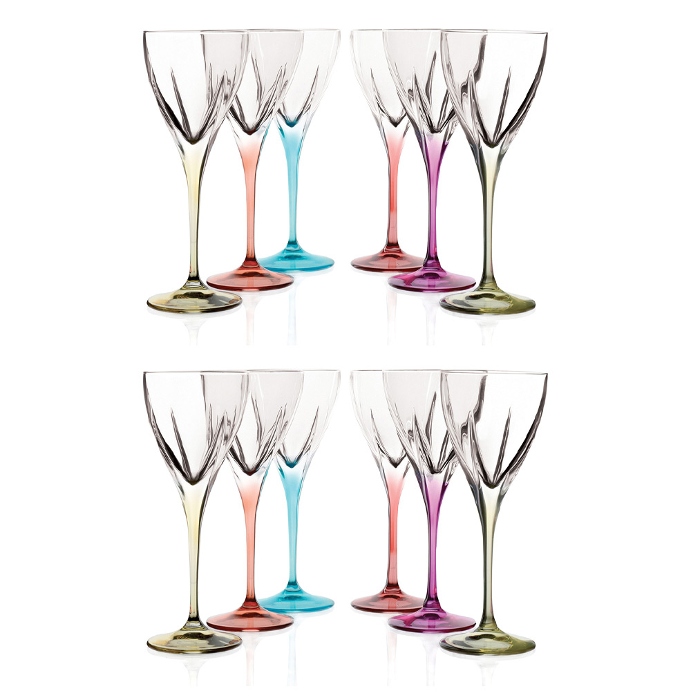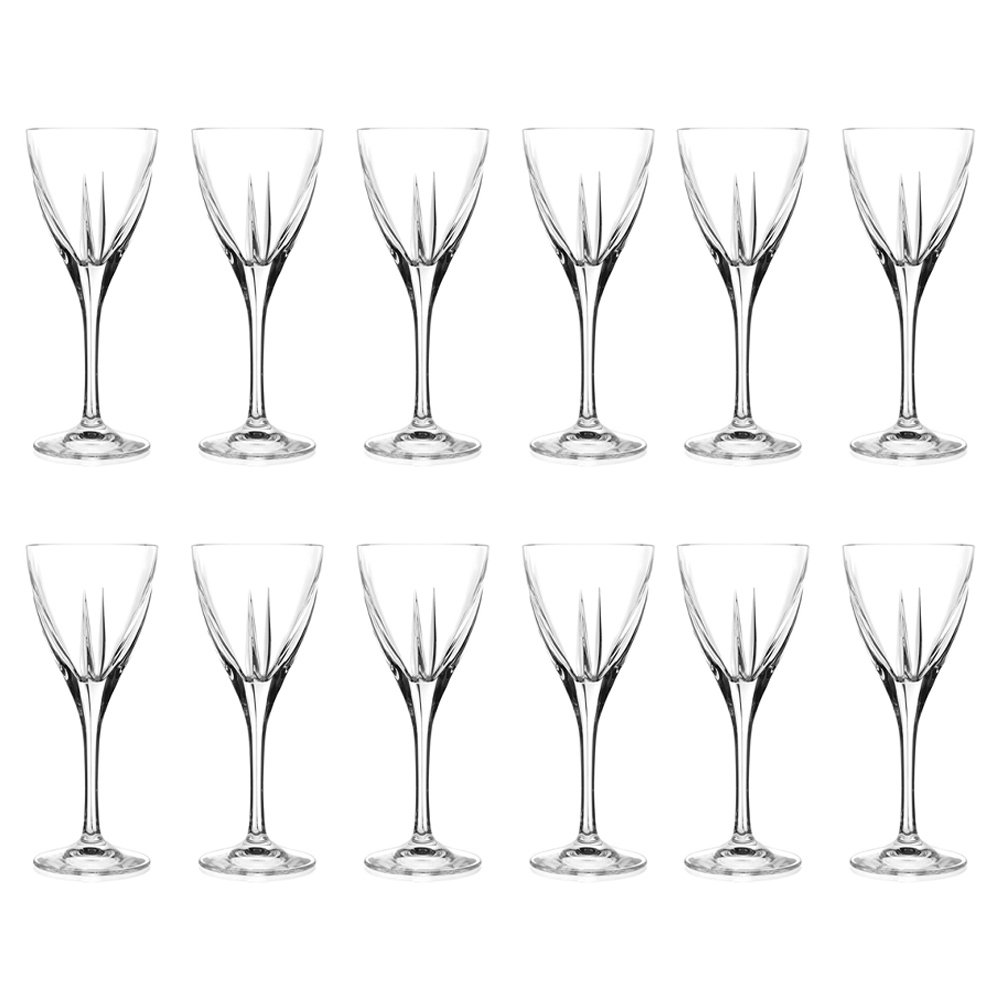 Set likeurglazen in transparant of gekleurd eco kristal, 12 stuks made in Italy.