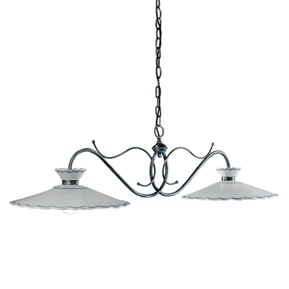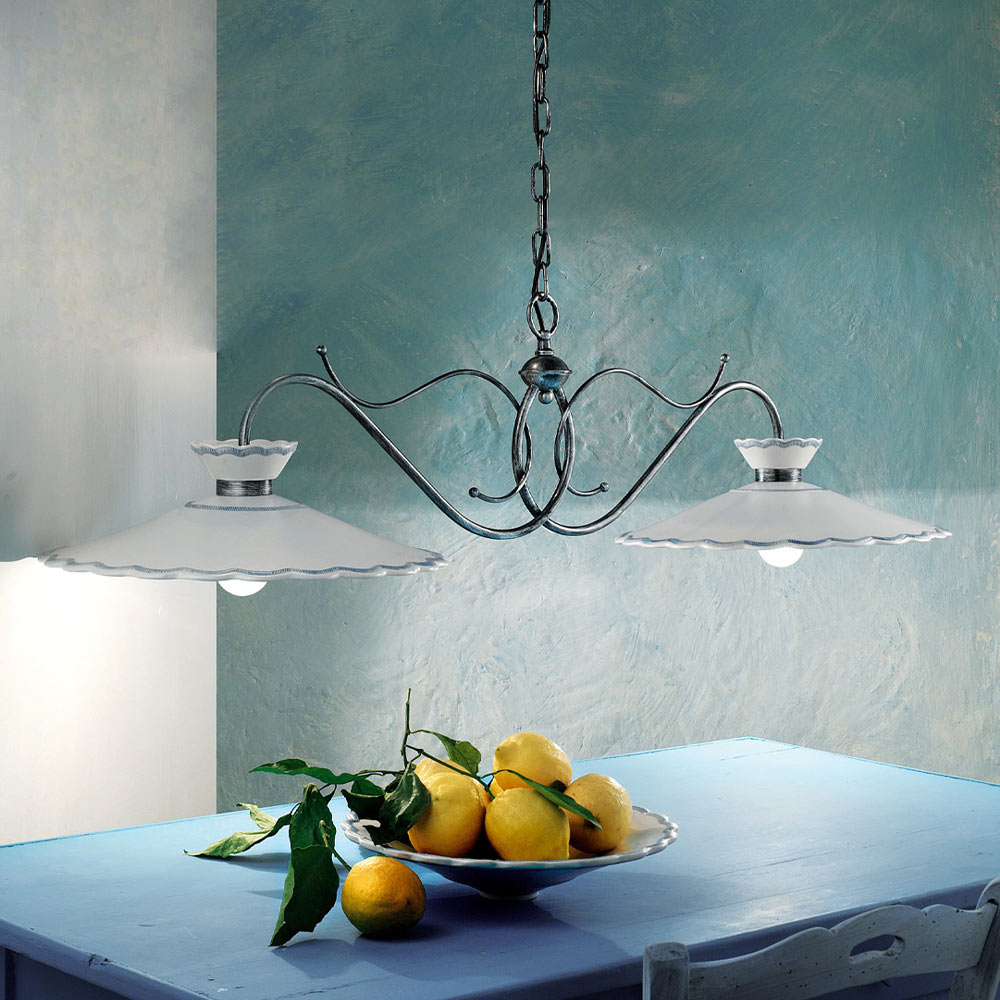 Handgemaakte 2-lichts hanglamp in metaal en keramiek met borduureffect, 2 maten gemaakt in Italië door Ferroluce.
